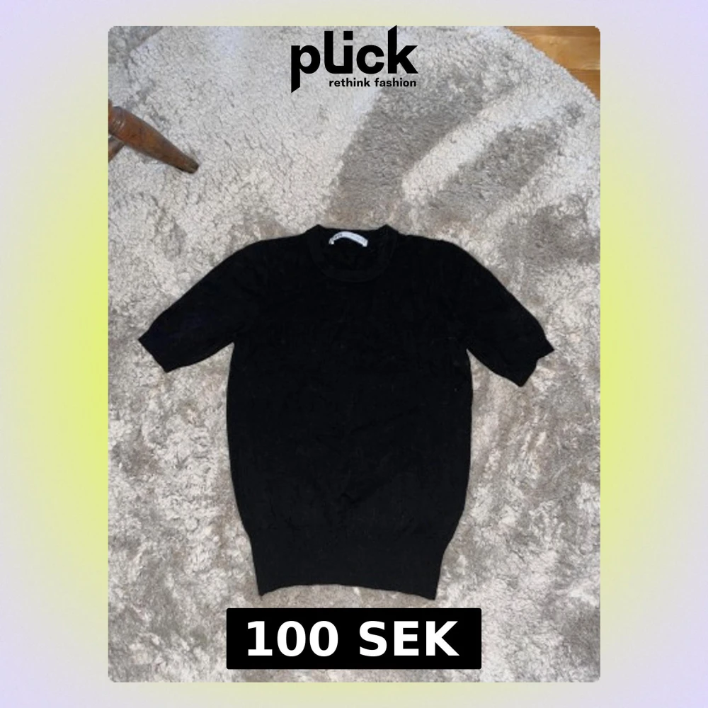 En finarickad T-shirt topp från Zara. Använt sällan, bra skick. Svart i storlek S. Perfekt till snygga jeans!!😍
