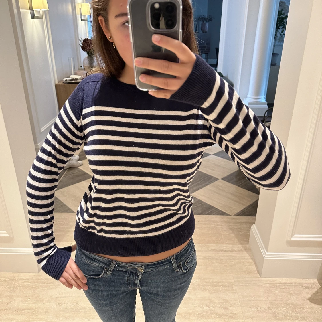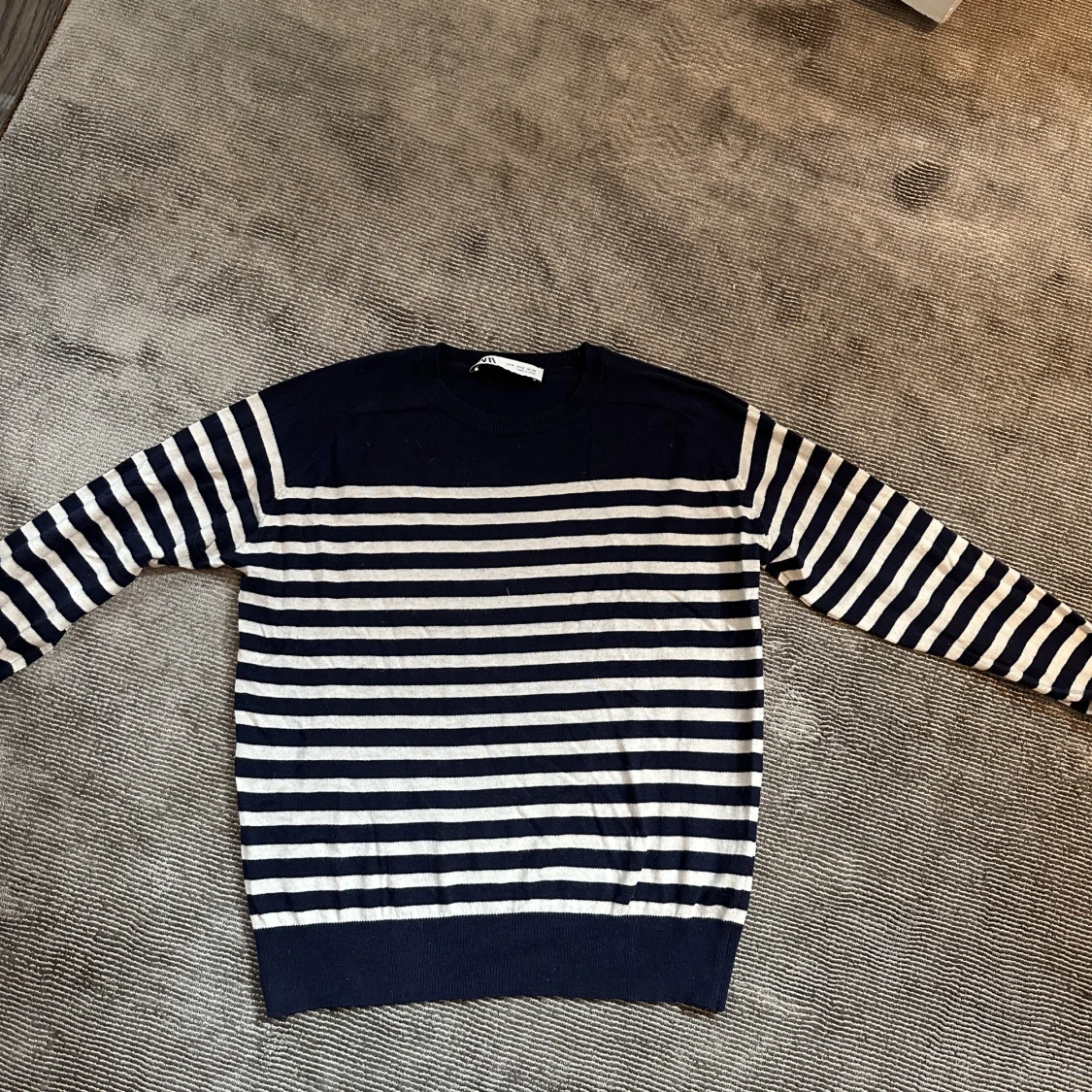 Supersöt randig tröja från zara, använd 2 gånger därav mycket bra kvalitet. Supermjuk och skönt material och mycket snygg modell😍
