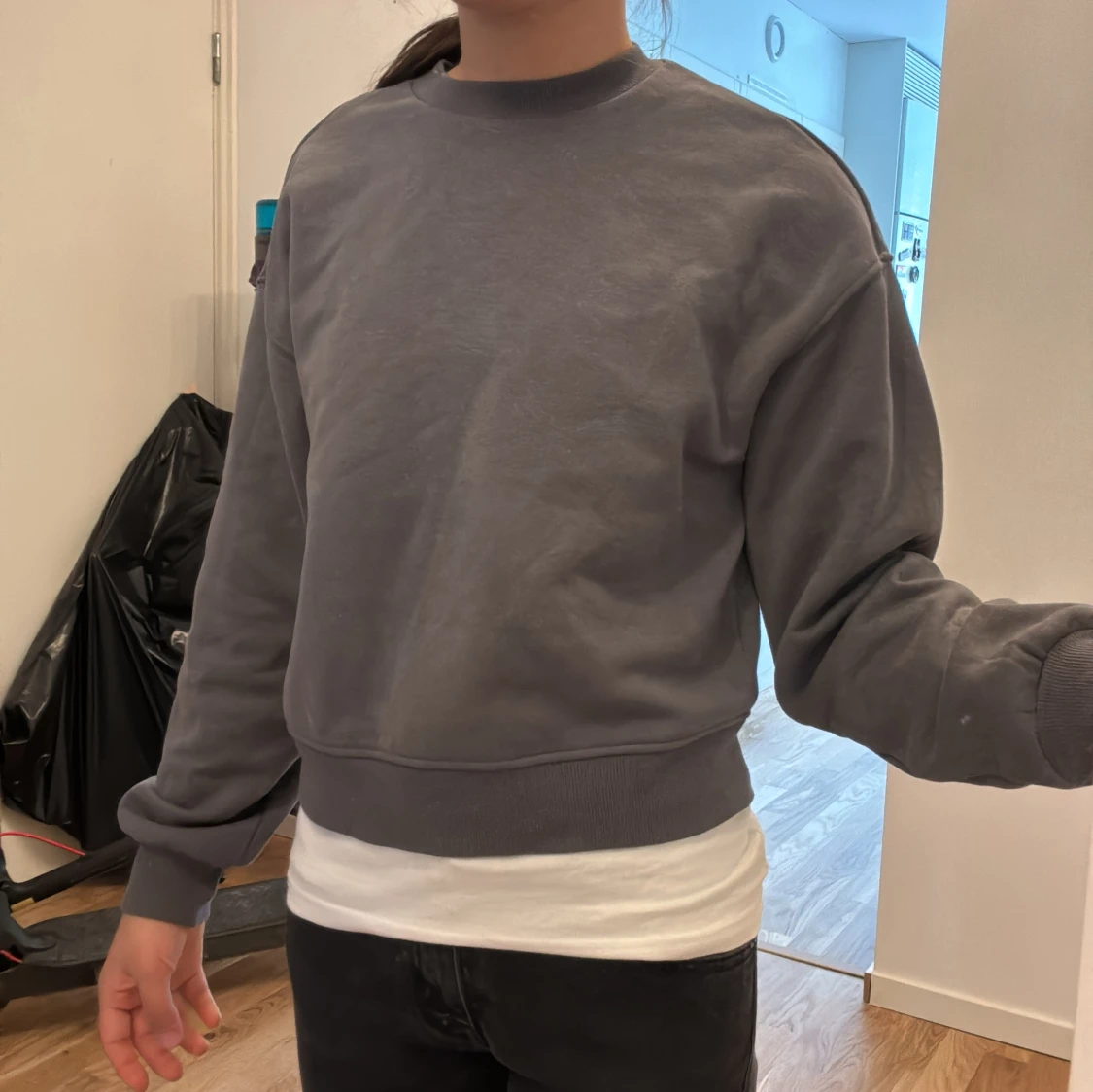 Enkel och stilren grå sweatshirt med rund hals och långa ärmar. Tröjan har en loose passform och är tillverkad i mjuk bomull. Perfekt för en chill och avslappnad look. Ribbstickade muddar vid ärmslut och nederkant ger en snygg finish. Priset kan diskuteras.