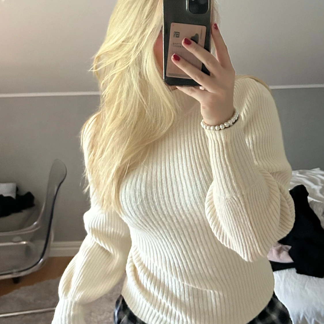 En vit snygg ribbad tröja från only