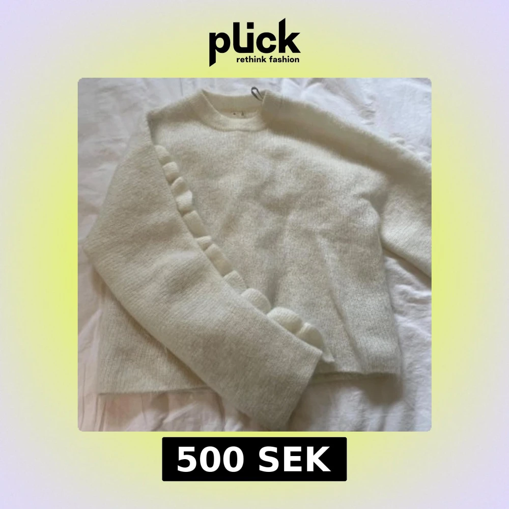 Jättefin Supermjuk och fluffig vit stickad tröja i storlek XS från arket. Tröjan har långa ärmar och en snygg volangdetalj längs ärmarna som ger en extra touch. Tillverkad i mohair, ull och polyester för en riktigt cozy känsla. Hör av er vid funderingar eller prisförslag❤️❤️