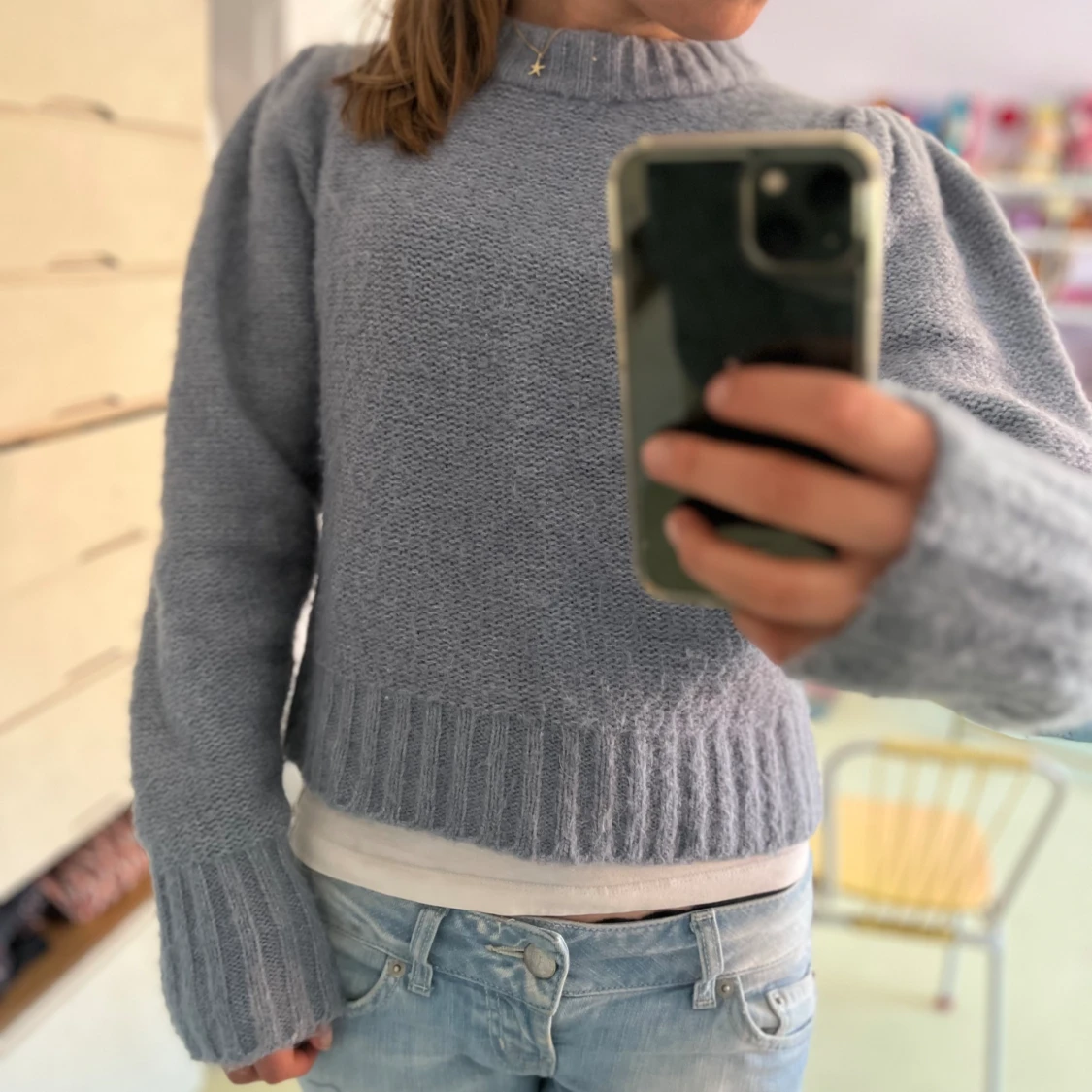 stickad tröja i jättefin blå färg 🩵 bra skick! kan mötas i stockholm och svarar gärna på frågor