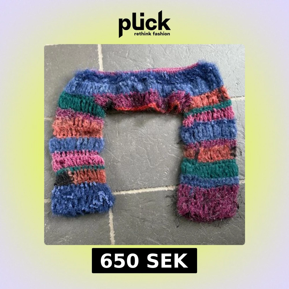 Unik croppad stickad tröja med vida ärmar i olika färger och garn. Flera av garnerna är merinoull, mohair och ylle. Perfekt för dig som vill sticka ut med en färgstark och kreativ look. Gjord av mig!