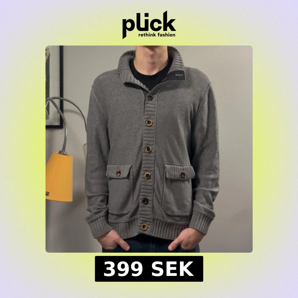 Säljer denna riktigt schyssta grå cardigan! Cardiganen är i fint skick men är pyttelite missfärgad vid ärmslutet (bild3), men syns inte alls i verkligheten! Passar M/L, modellen på bilden är 182cm lång ish. Skriv vid fler frågor!