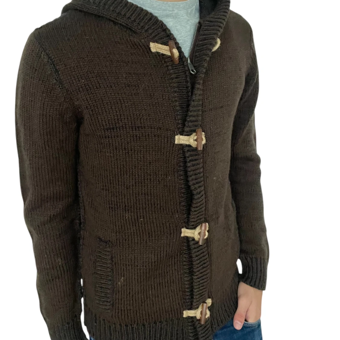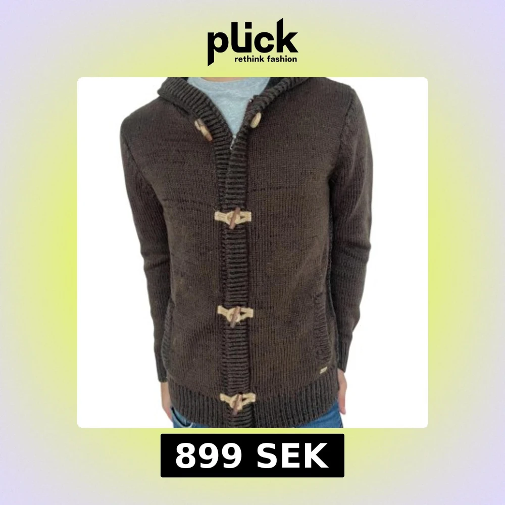 Otroligt fet stickad cardigan med luva i toppskick, priset kan diskuteras!