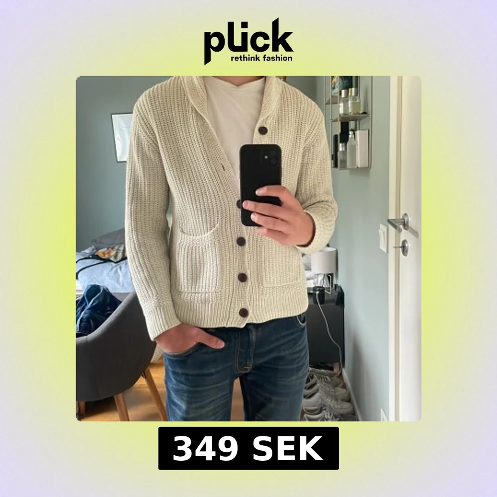 Hej, säljer en crémevit cardigan stickad från gant. Jag är 175 cm lång och den är lite liten på mig. Väldigt bra skick, inga defekter.