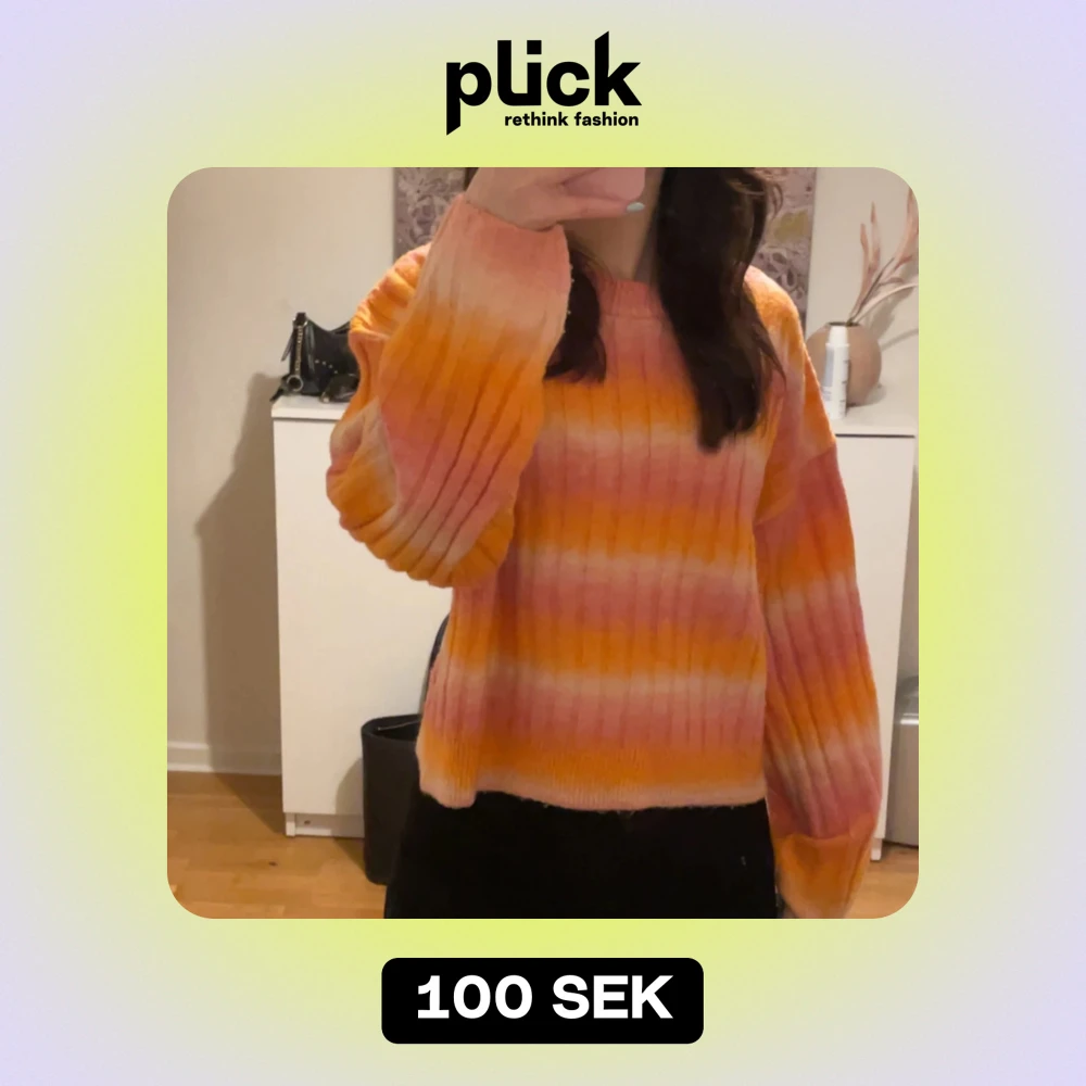 Säljer en superfin stickad tröja i rosa, orange och vit. Den har en loose passform och långa ärmar, perfekt för både vår och höst. Har bara använt ett fåtal gånger, så är i mycket bra skick! 💕
