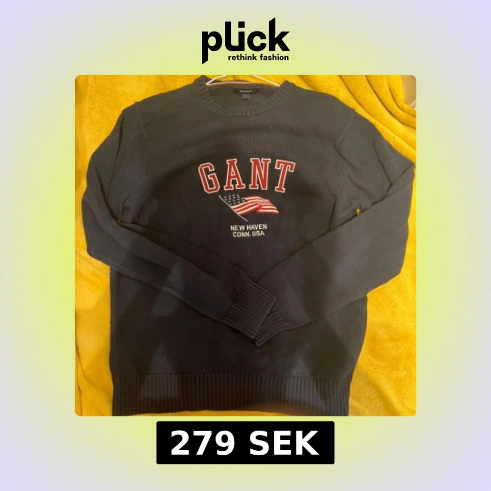 Säljer denna sjukt snygga mörkblåa stickade tröjan från GANT med text och amerikansk flagga på framsidan. Tröjan har långa ärmar och ribbstickade muddar vid ärmslut och nederkant. Perfekt för en avslappnad stil.