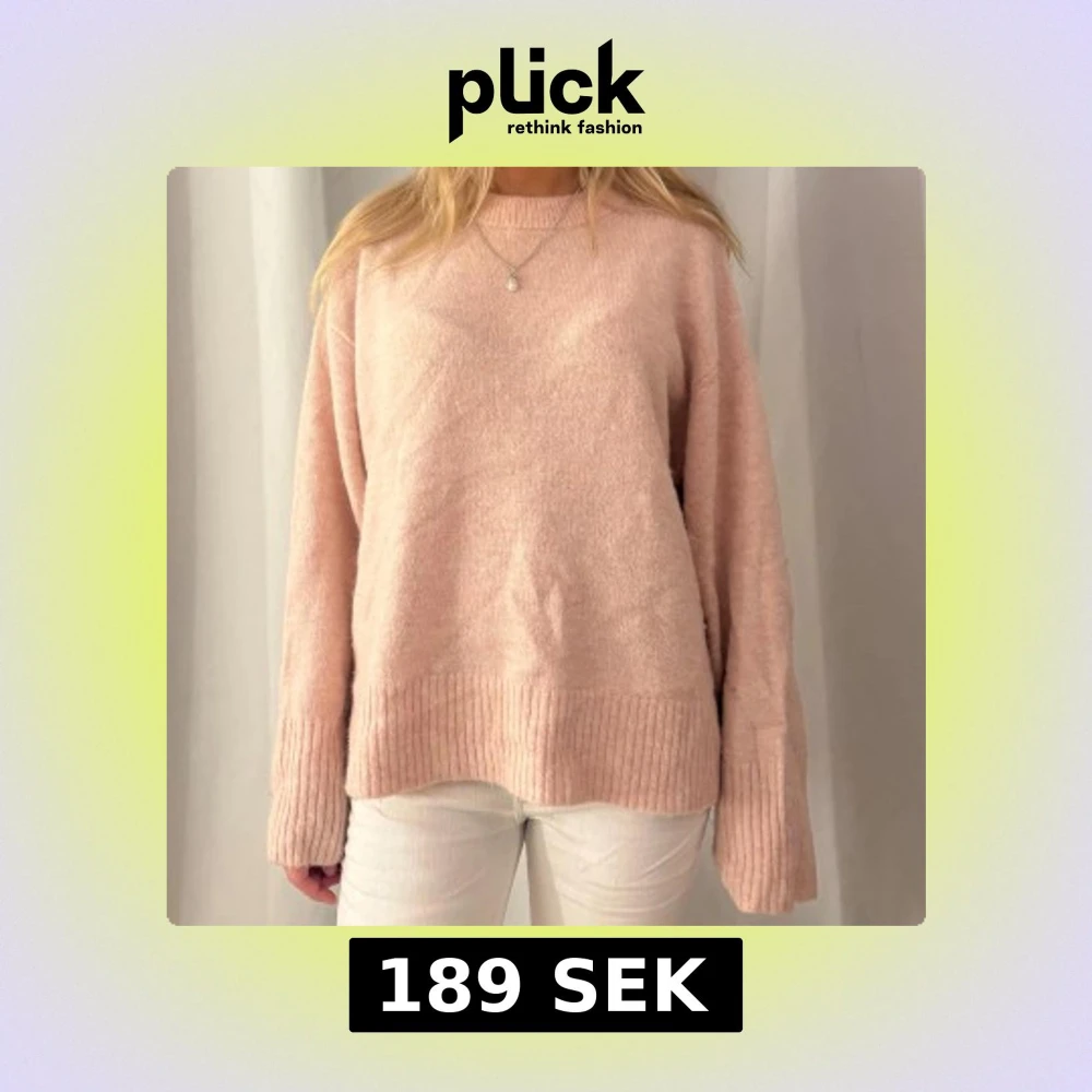 Supermysig ljusrosa stickad tröja med breda ribbade muddar vid ärmslut och nederkant. Tröjan har en relaxed passform och rund halsringning, perfekt för lager-på-lager och chill dagar.