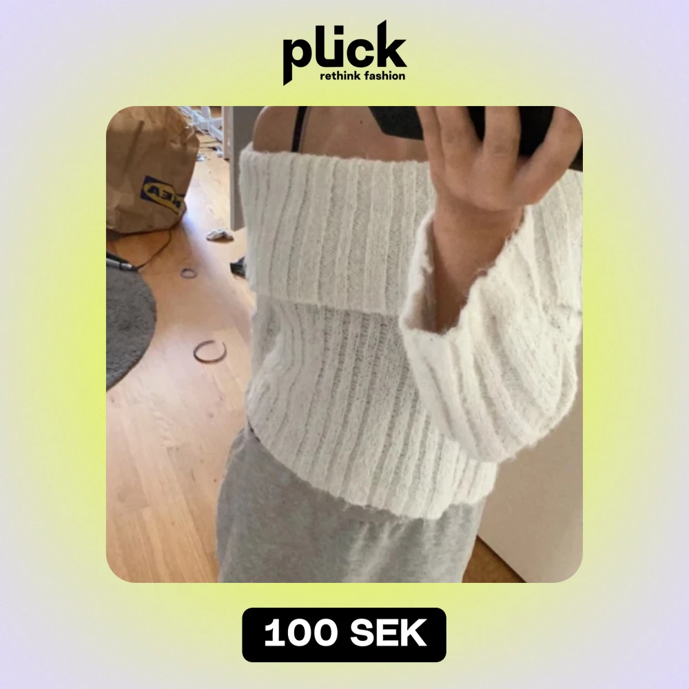 Jättefin vit off shoulder tröja i bra skick🤍lappen på tröjan är tyvärr borttagen så jag är inte helt säker på storleken