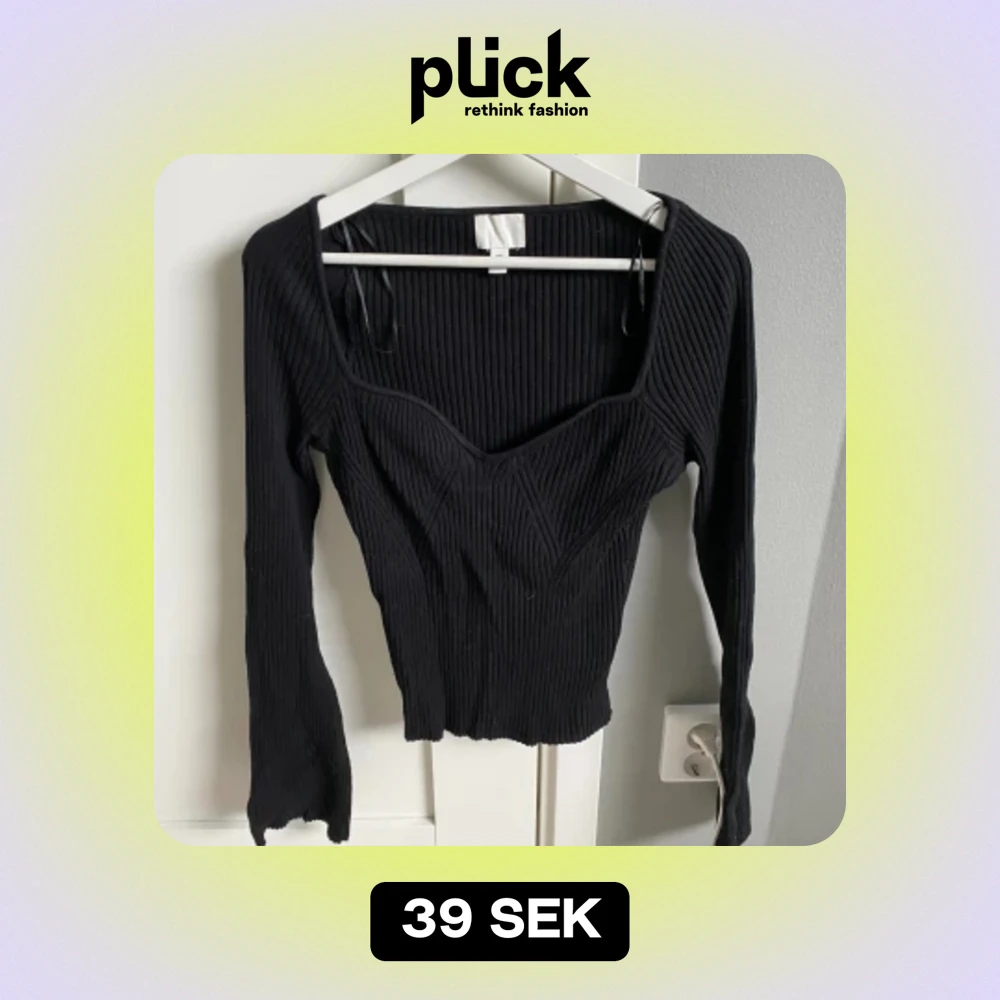 En svart stickad topp från H&M. Urringad bekväm. Använd ca 8 gånger. Skulle säga att den passar M också men även större storlek då den är stretchig i materialet.