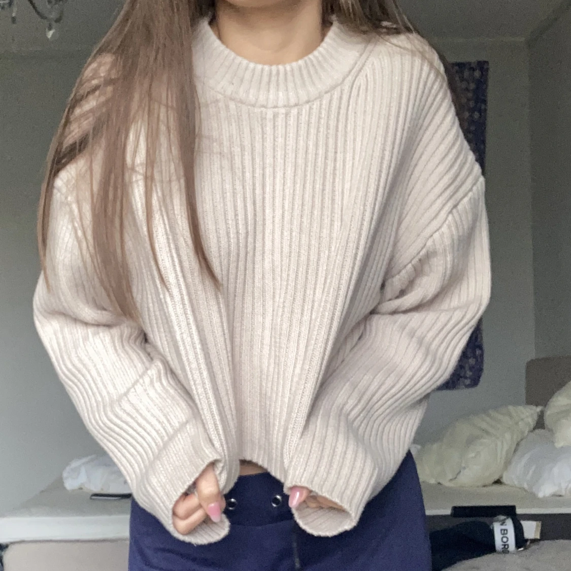 Snygg beige stickad tröja från hm. Bara använd ett fåtal gånger då den inte riktigt är min stil. Bekväm och sticks inte!