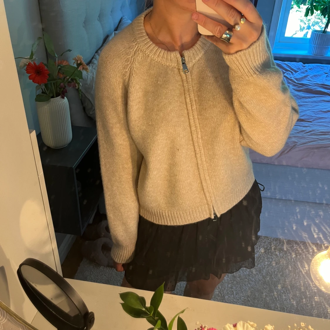Skitsnygg stickad kofta med dragkedja på mitten!🧸 Storlek L men väldigt liten i storleken, så skulle snarare säga att det är en S!