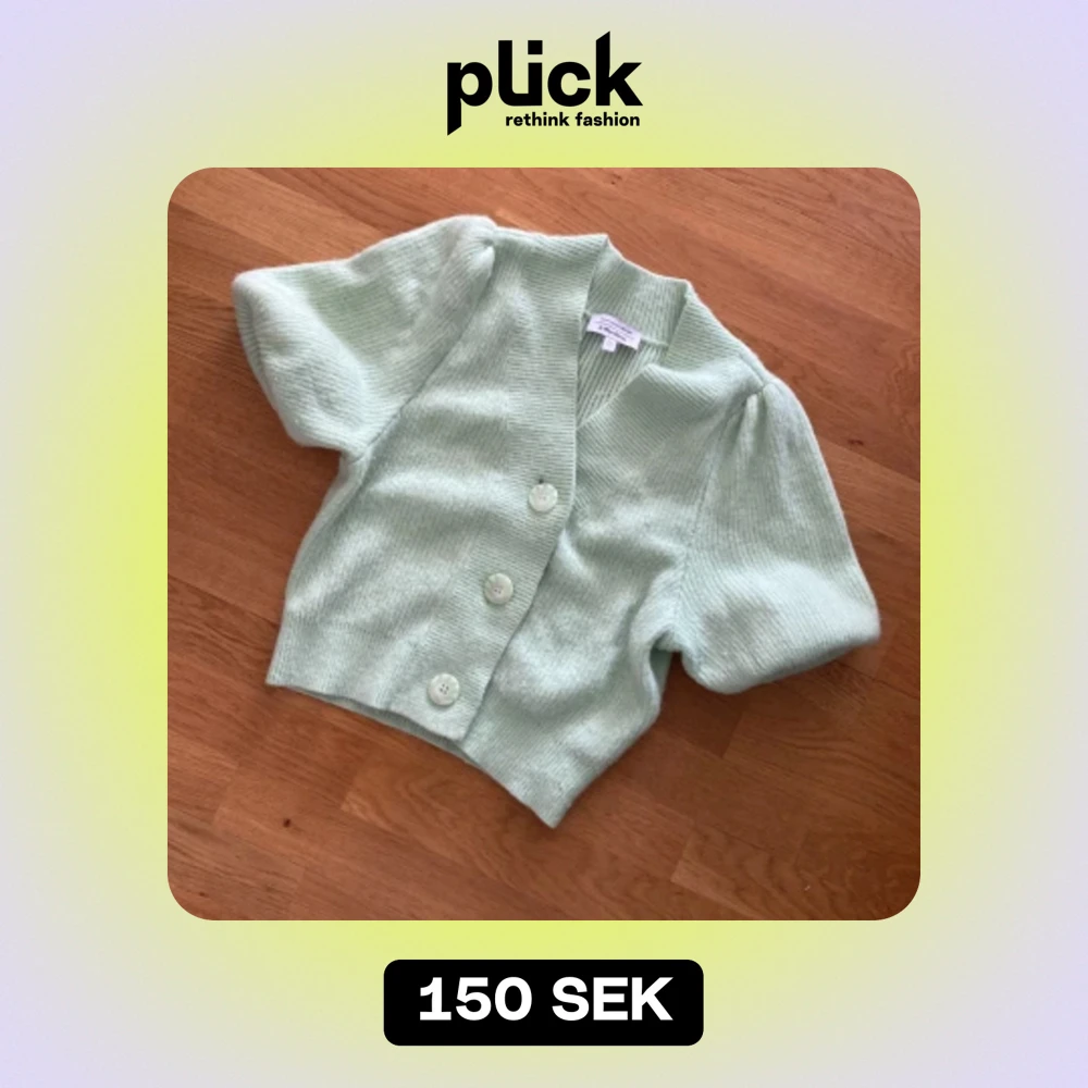 Stickad ljusgrön kortärmad kofta från & other stories i ull! Jättefint skick