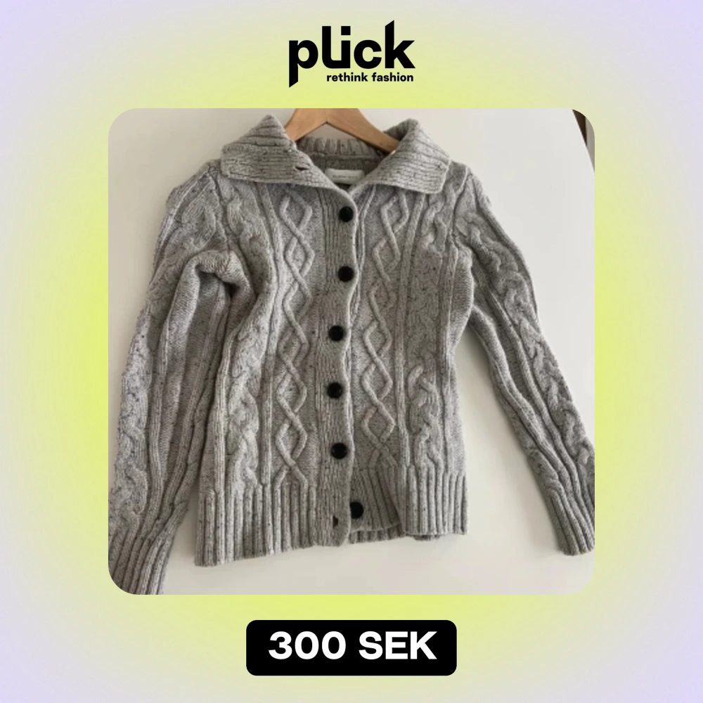Superfin grå stickad kofta från Selected Femme, perfekt till hösten😁Det står storlek M i tröjan men skulle mer säga att det är en S!
