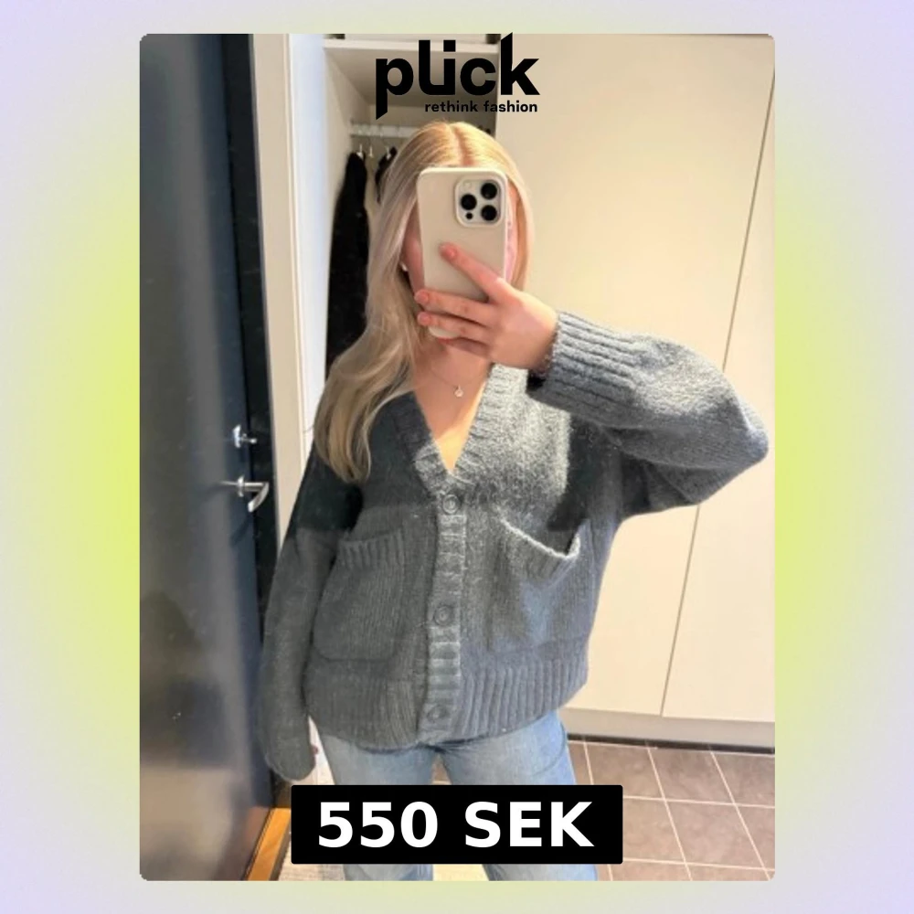 Superfin stickad kofta i en blå/grå färg💕 nyskick, nypris är 899! Storlek xs men är oversized!