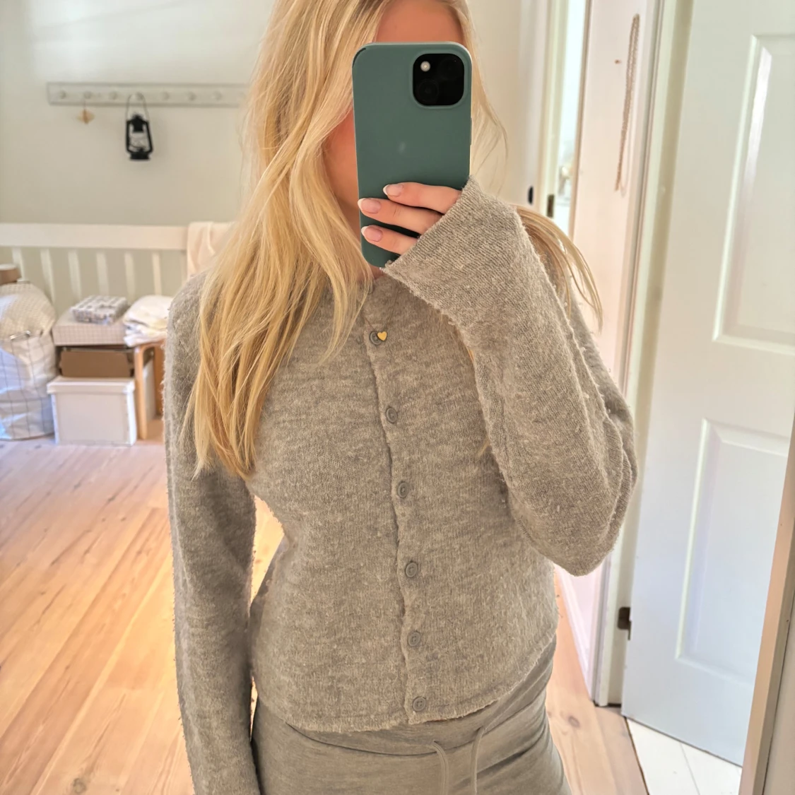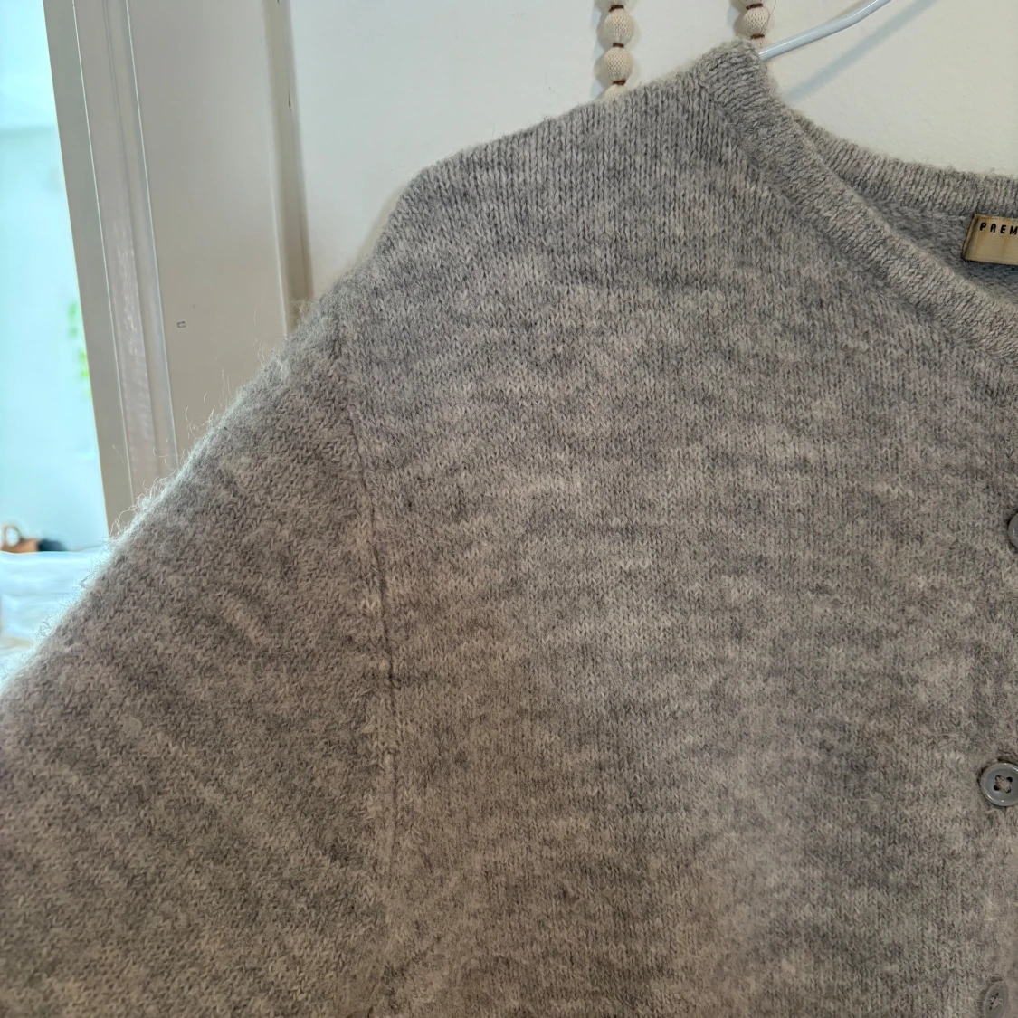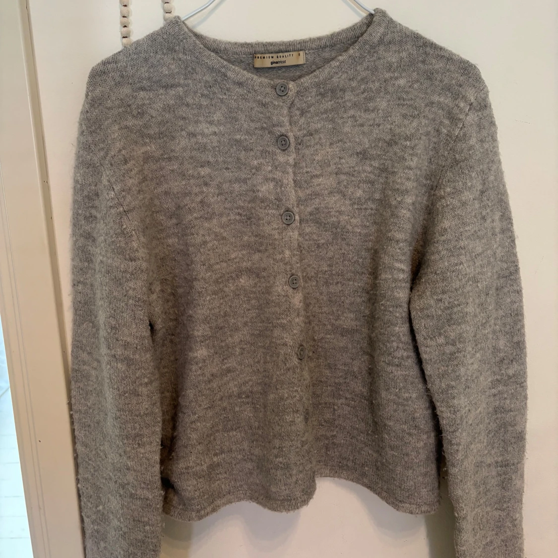 Grå stickad kofta från gina tricot, koftan har tecken på användning då den är nopprig