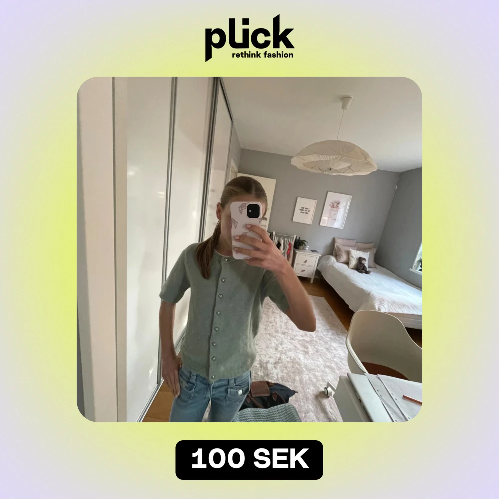 Säljer denna nästan helt nya stickade kortarmade kofta 🙏🏼använd kanske 3 gånger, men har ett litet litet hål som inte syns. Säljer för 100kr 🥰