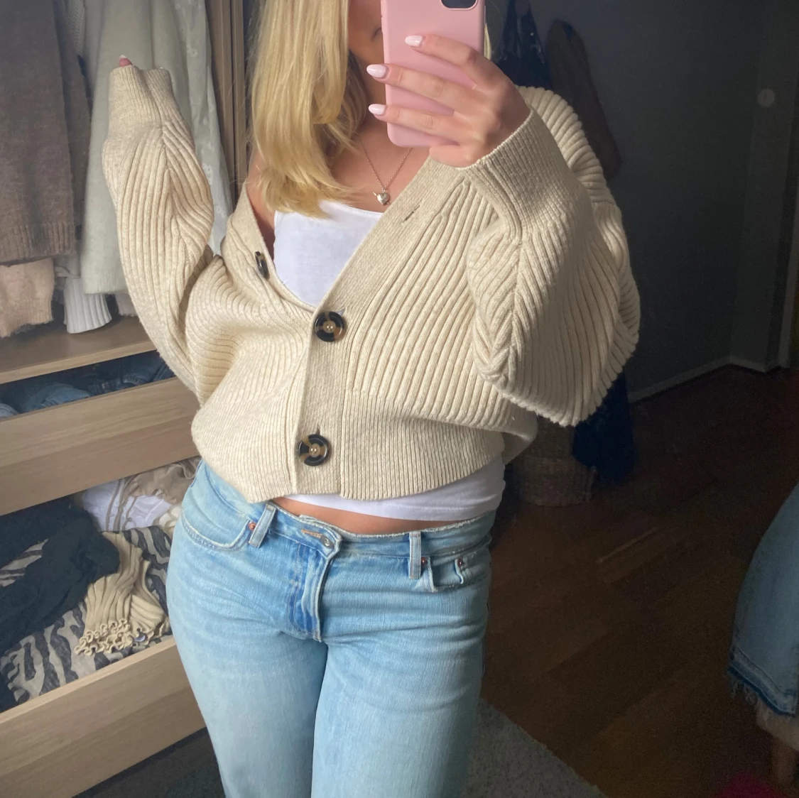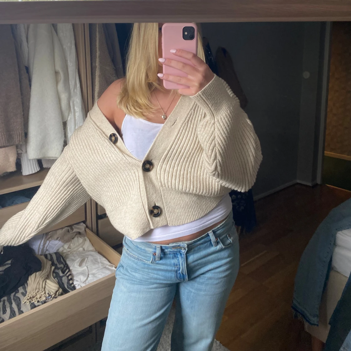 Stickad kofta som ej kommer till användning