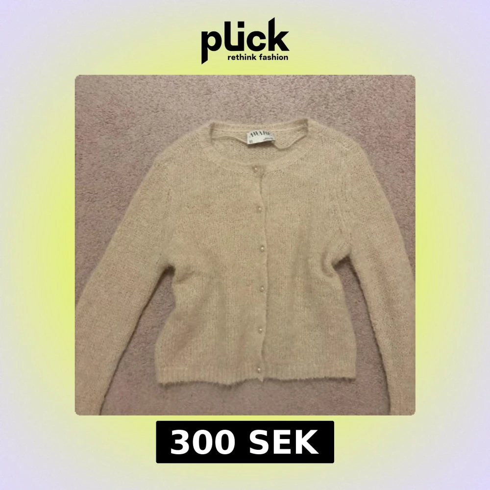 Supermjuk och fluffig beige stickad kofta från AWARE. Koftan har rund halsringning, långa ärmar och pärlknappar framtill. Perfekt för lager-på-lager och ger en chill men ändå söt vibe till din outfit. Aldrig använd