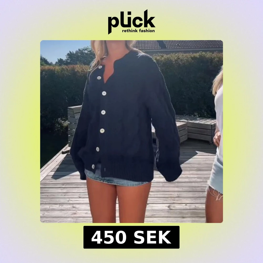 Mörkblå kabelstickad kofta från Gina Tricot. Koftan har långärmad, oversized passform.
