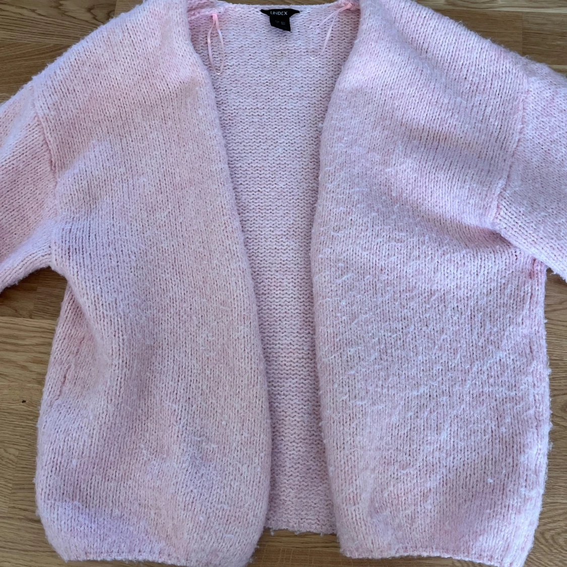 Supermysig ljusrosa stickad kofta från Lindex!🩷lite nopprig som dem blir lätt, men annars bra skick! Storlek M/L
