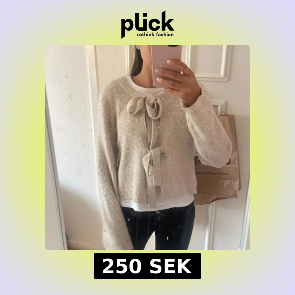Superfin beige stickad kofta med två stora knytband. I väldigt bra skick