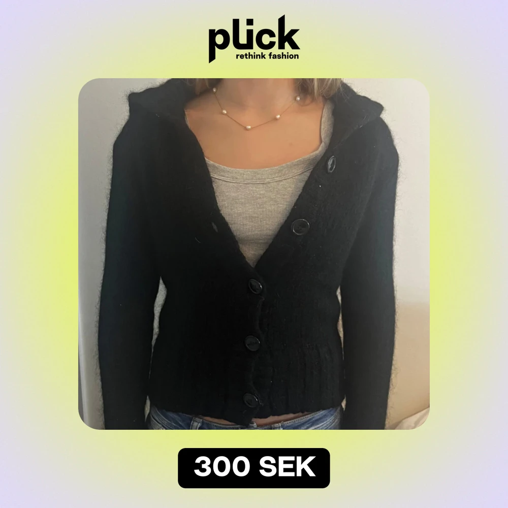 Säljer en snygg svart kofta med stora knappar framtill. Den är perfekt för kyliga dagar och har en skön passform. Koftan är långärmad och har en ribbad kant vid ärmslut och nederkant. Passar både till vardags och lite finare tillfällen. Det är från HM och ganska tjock