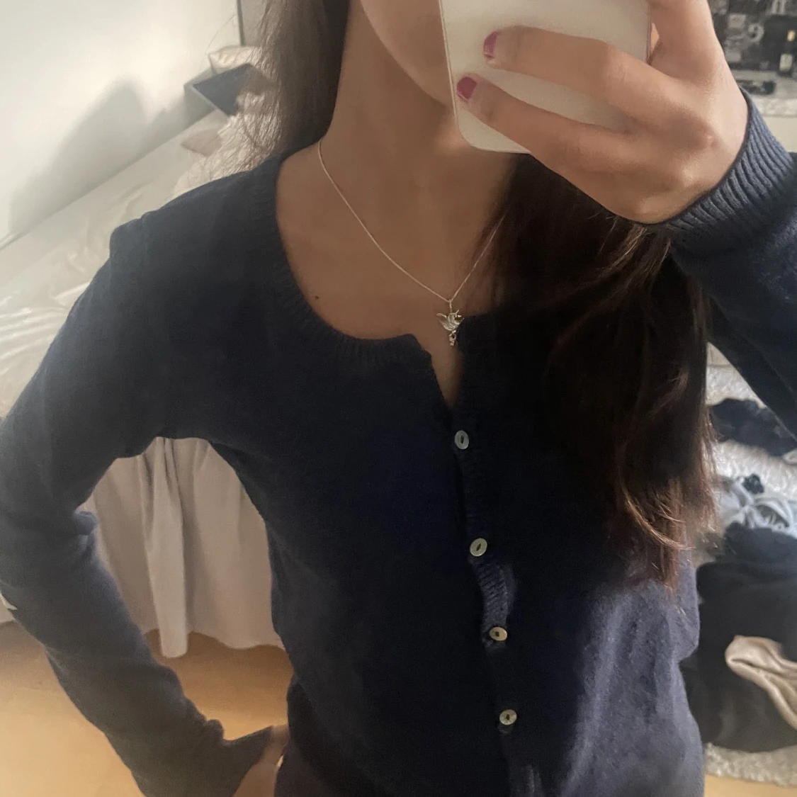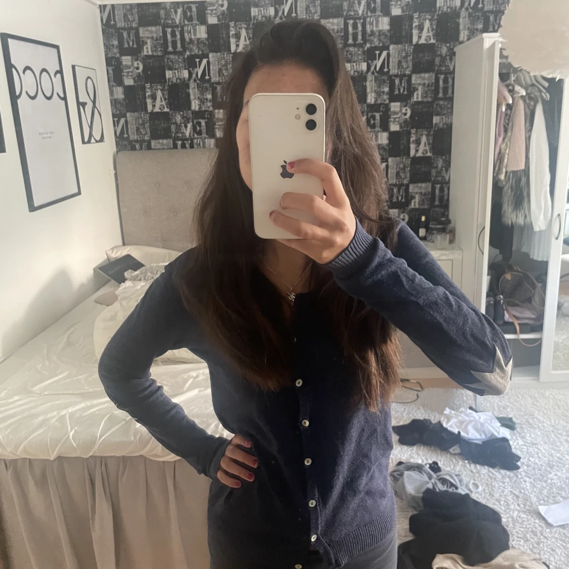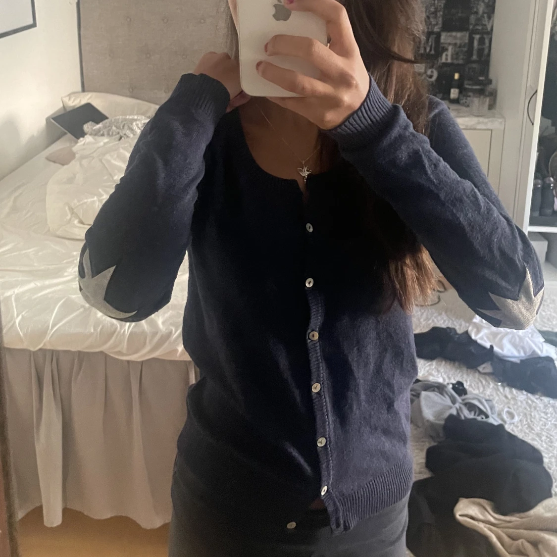 Säljer denna söta marinblå koftan med stjärnor vid armarna, koftan är perfekt längd och jätteskön 💗 nypris: 400