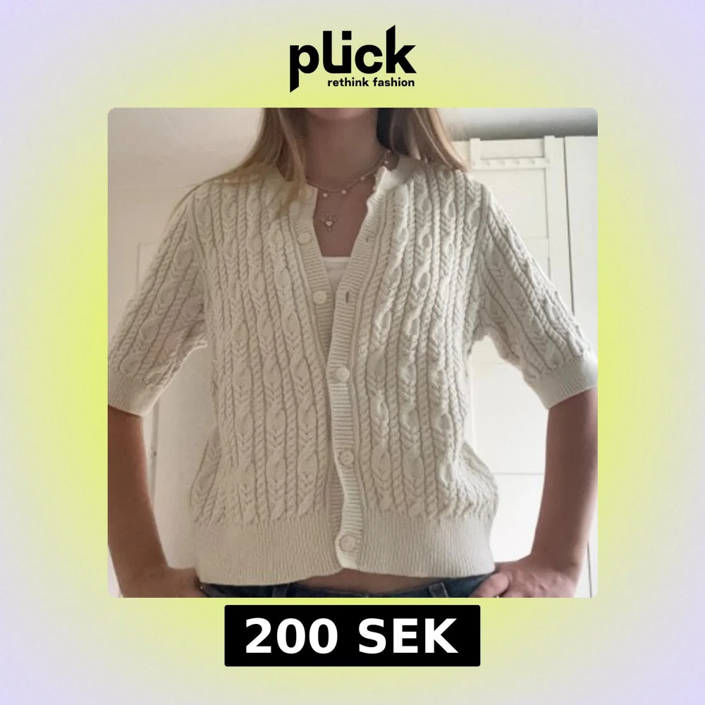 Beige stickad kortärmad kofta från Holly & Whyte, köpt på Lindex!💖Storlek M men passar även S!