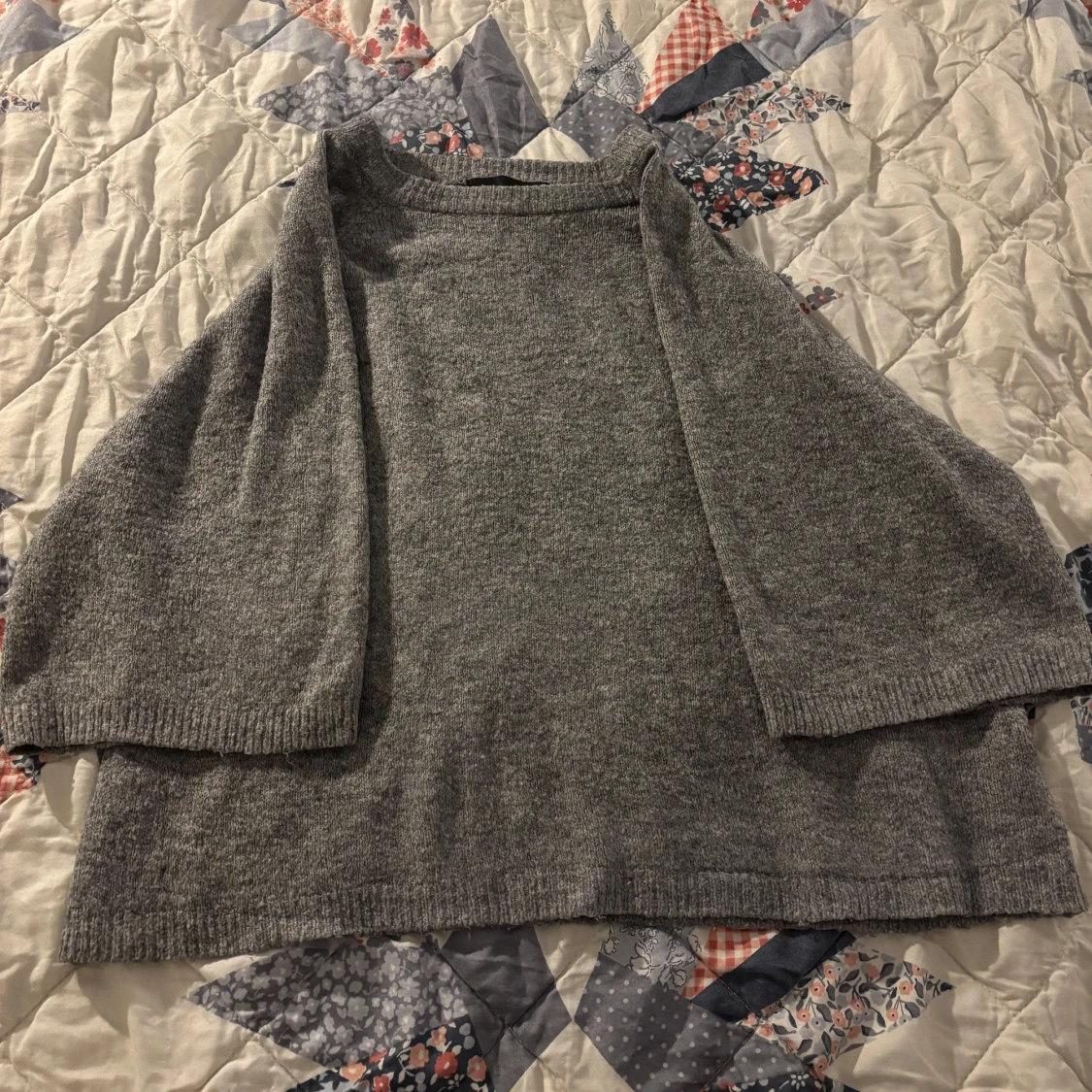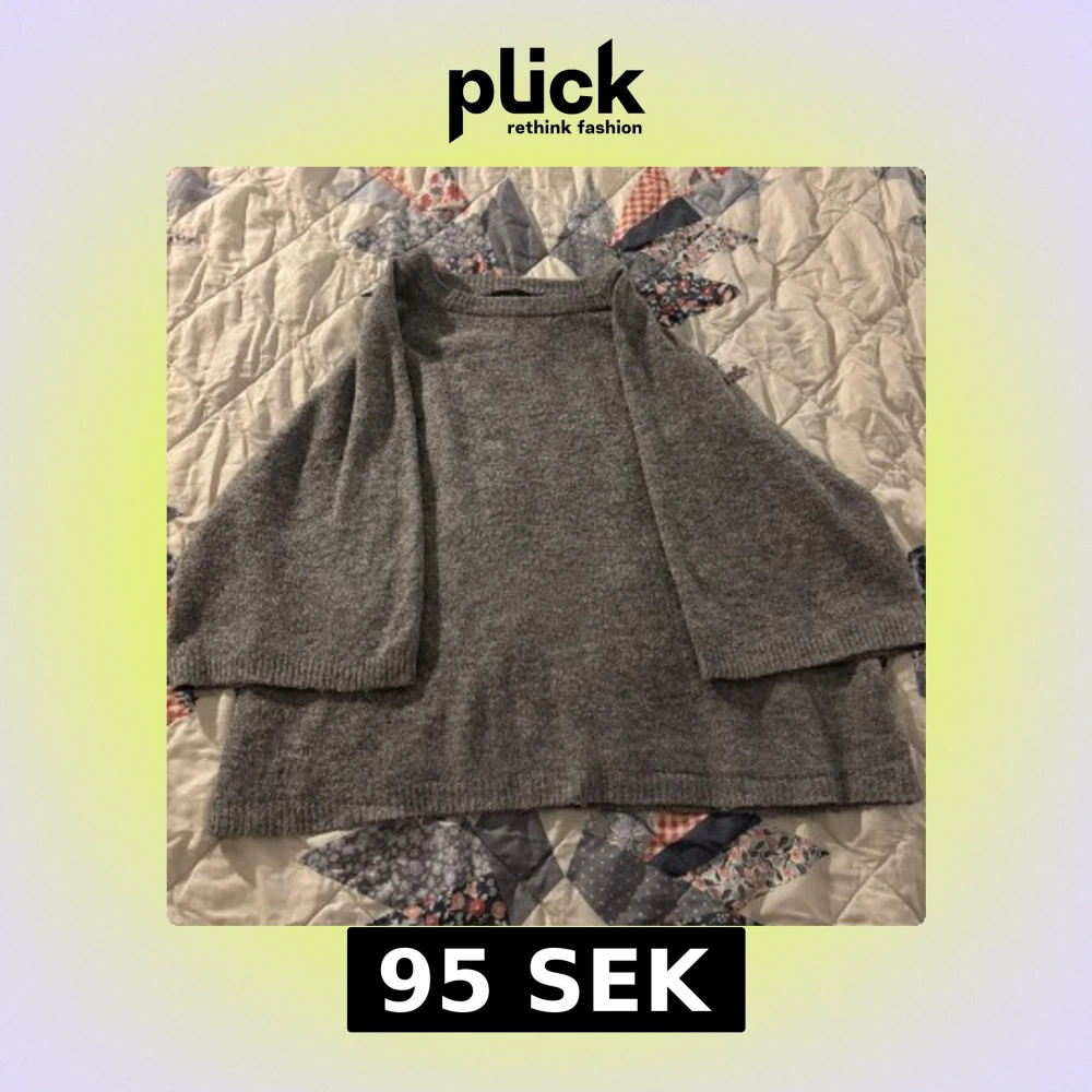 Mysig grå stickad tröja med trekvartsärm. Perfekt för kyliga dagar och enkel att matcha med olika outfits.