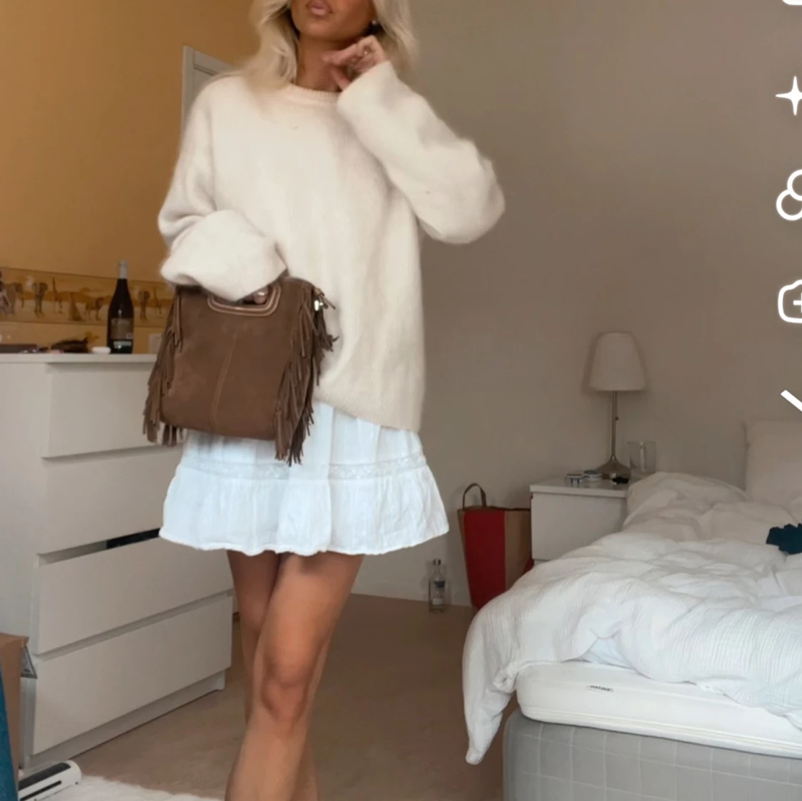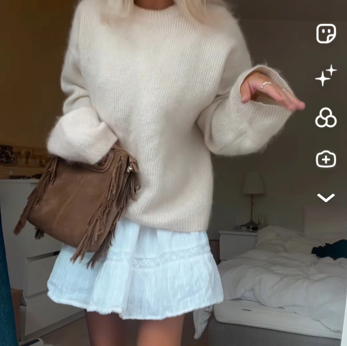 Lurvig stickad tröja i mohairblanding från arket! Gammelvit. Köptes för 3 år sedan för 1300kr. Bra skick 🤍 Inga skambud tack!🩷