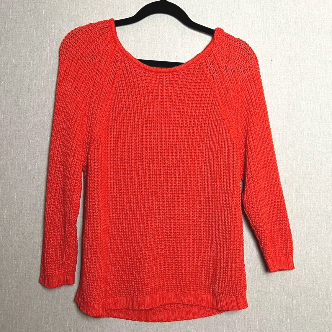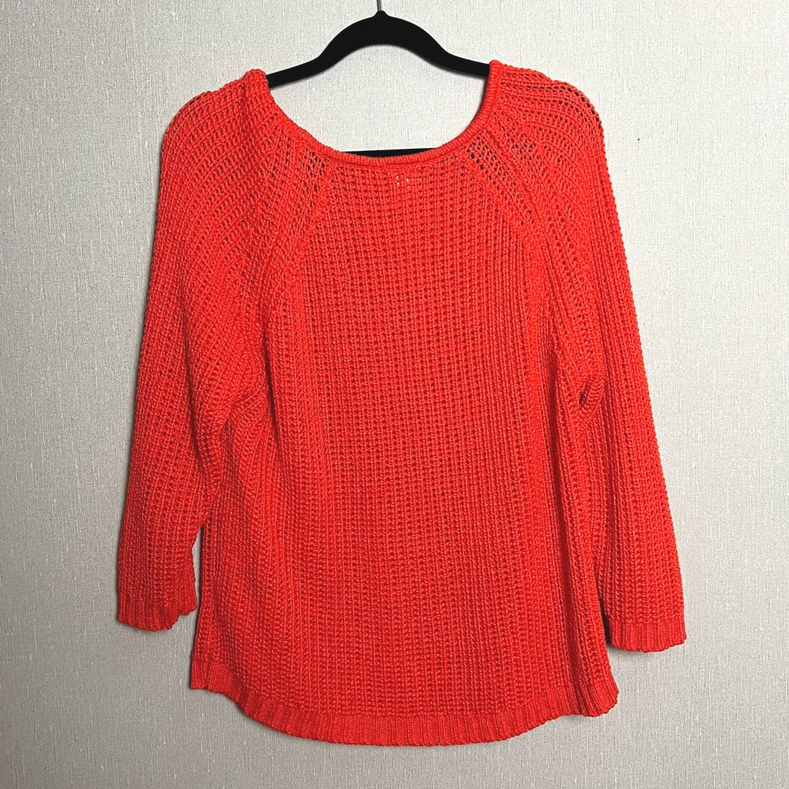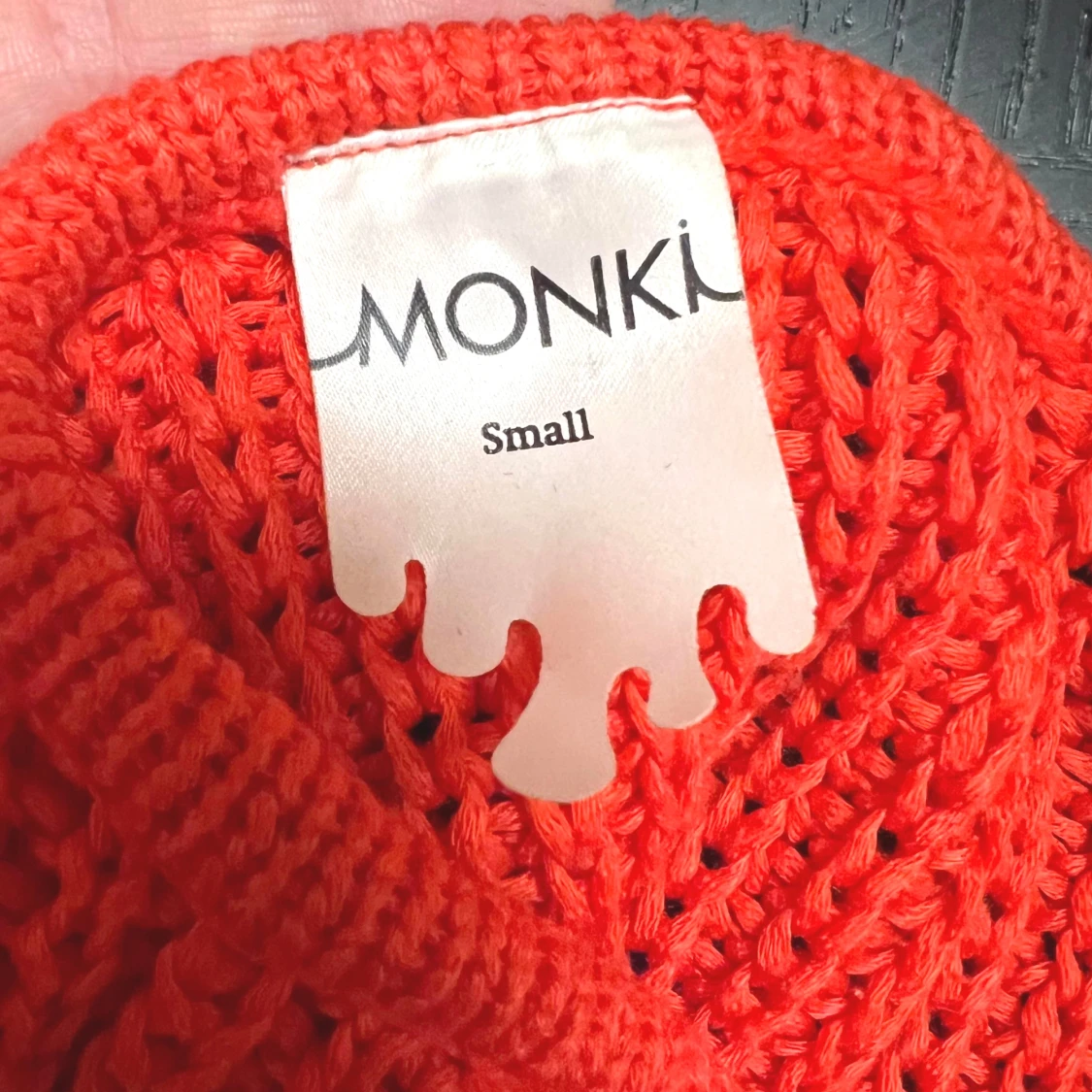 En röd stickad tröja från Monki i fint använt skick. Perfekt vinter och vårplagg!