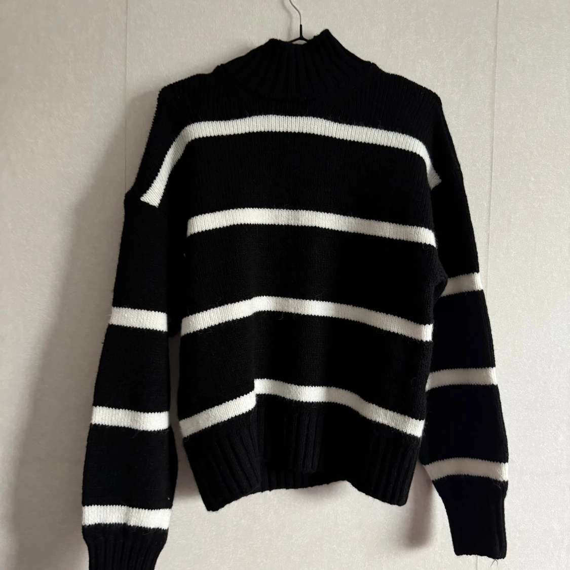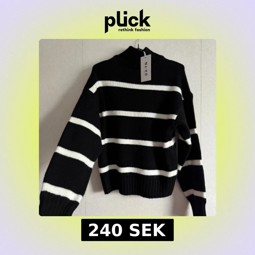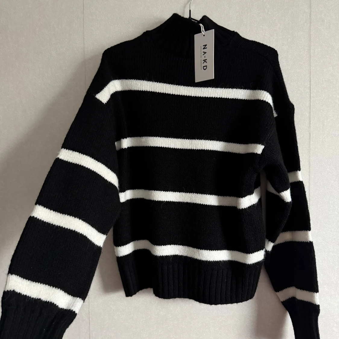 Snygg stickad tröja från NA-KD i svart med breda vita ränder. Storlek XXS men som motsvarar XS.