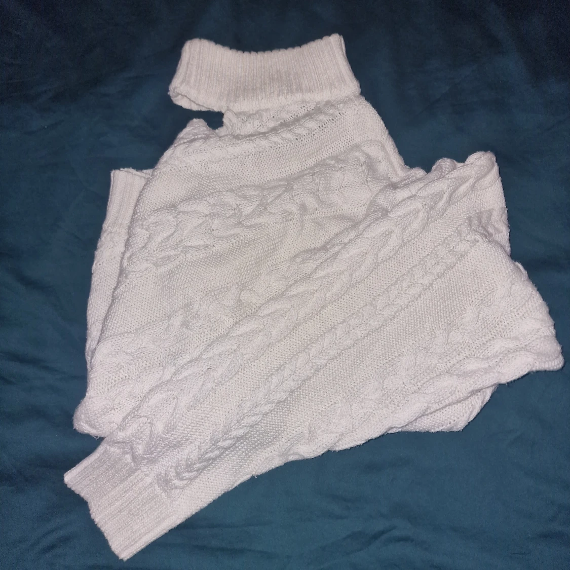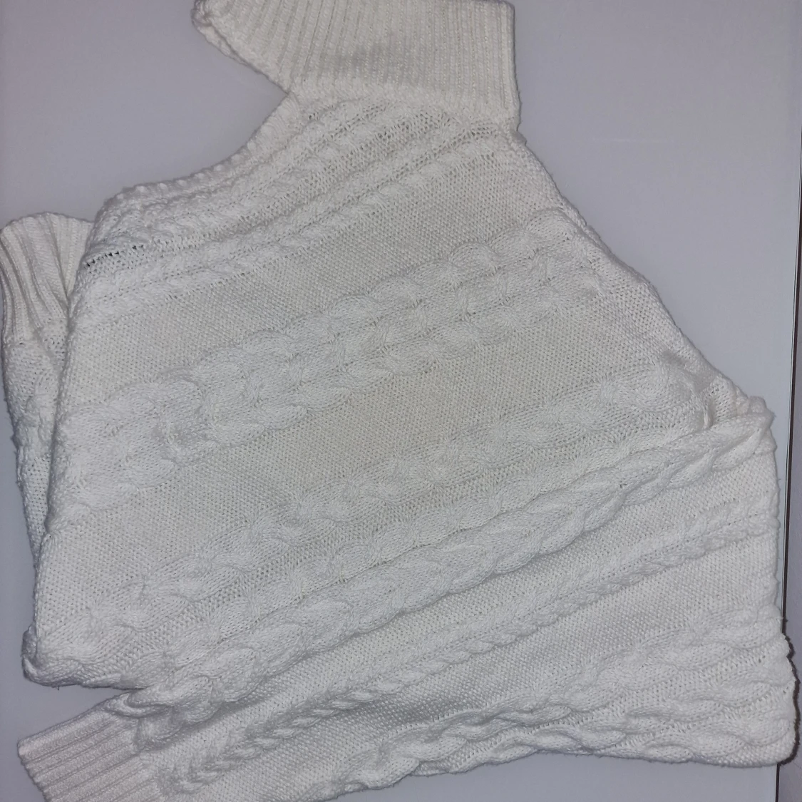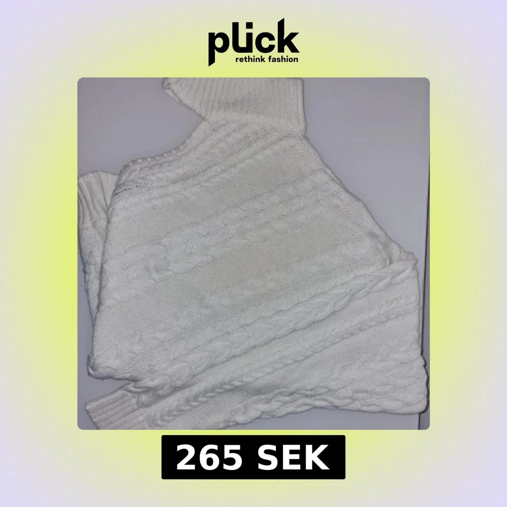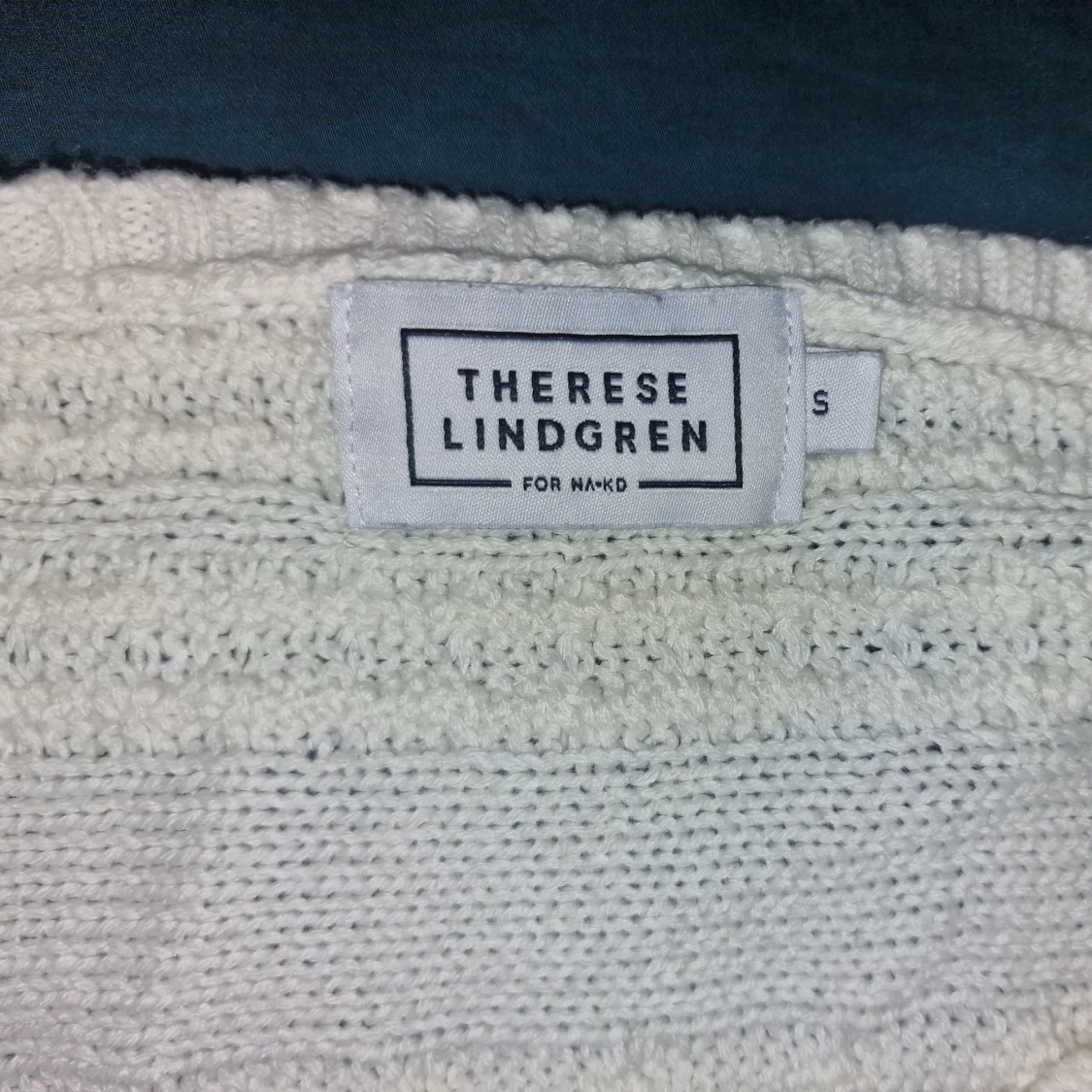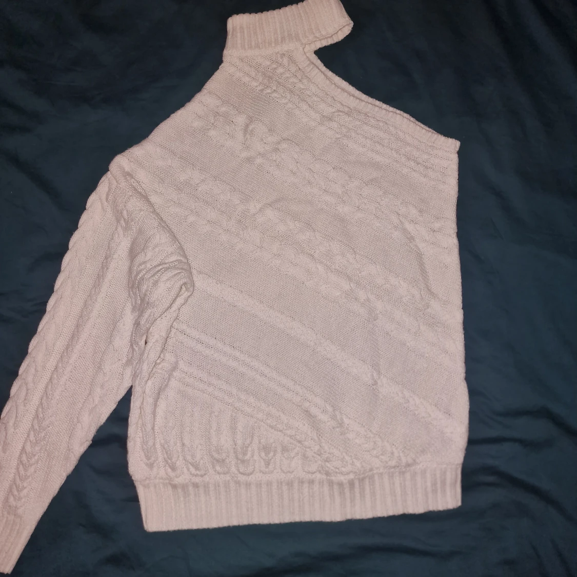 Supersnygg vit stickad tröja från Therese Lindgren for NA-KD. Tröjan har ett unikt oneshoulder-snitt med hög ribbad krage och flätstickat mönster. För dig som vill sticka ut med en trendig och mysig look.