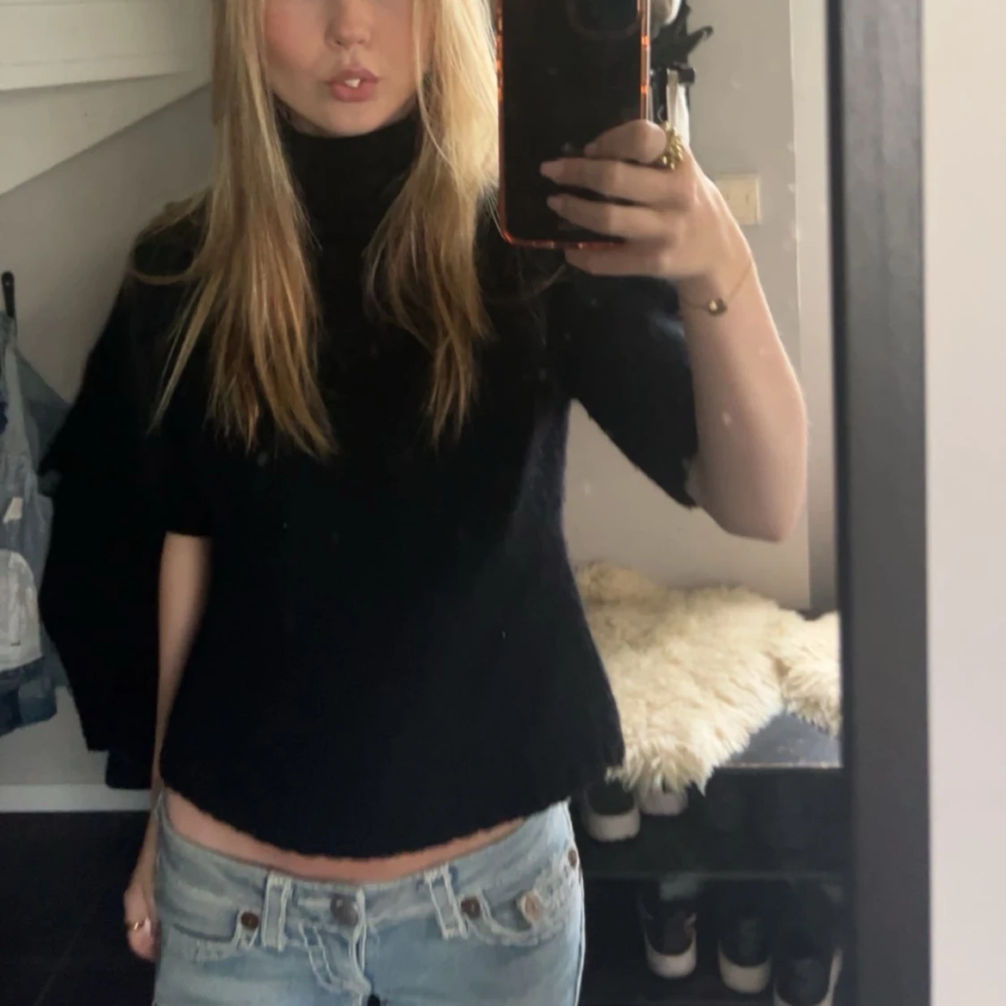 Säljer denna stickade T-shirt med polo krage. Köpte på Plick men använd av mig 2 gånger, gott skick inga defekter