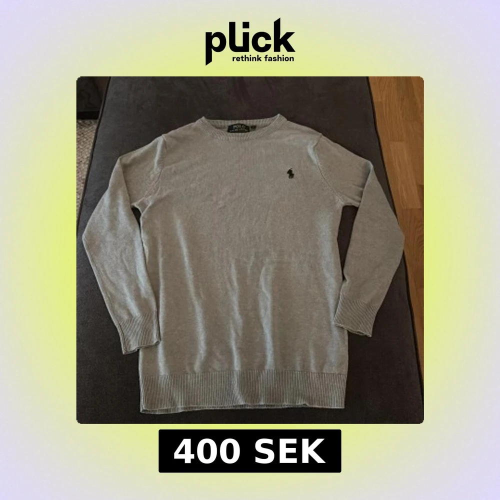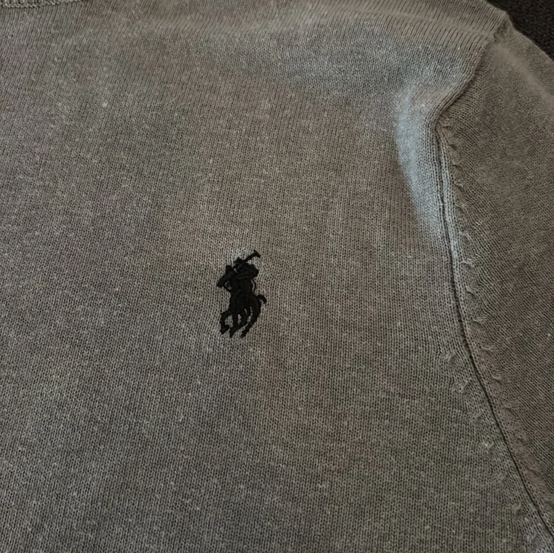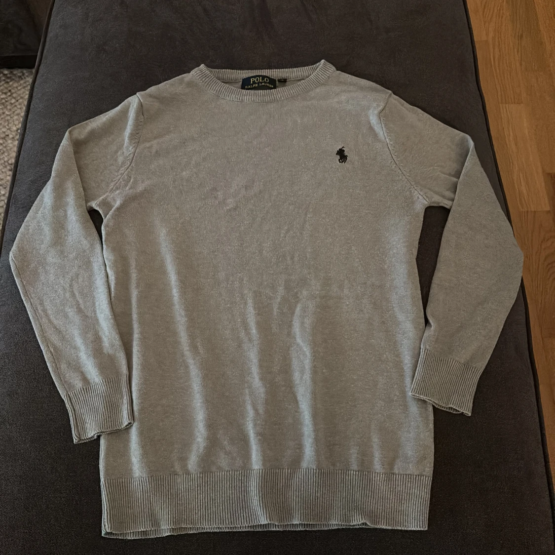 Säljer en stilren grå tröja från Polo Ralph Lauren med broderad logga på bröstet. Tröjan har långa ärmar och ribbade muddar vid ärmslut och nederkant. Perfekt för en klassisk look.