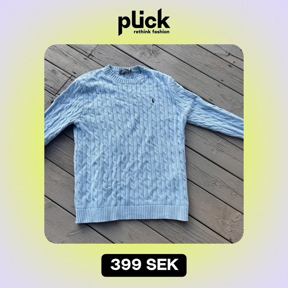 Fet polo Ralph lauren cable knit i ljusblå, använd 1 gång.