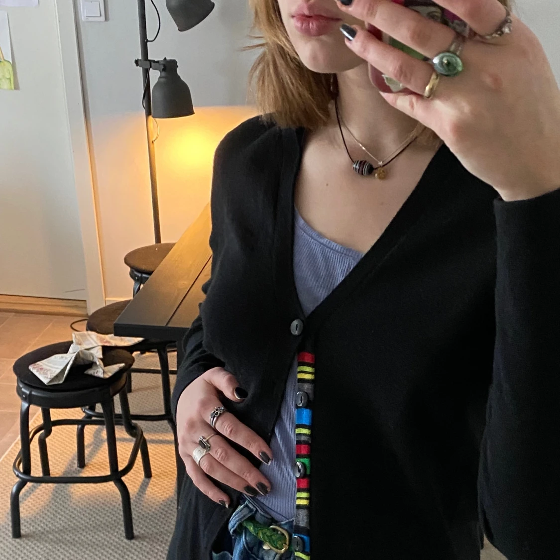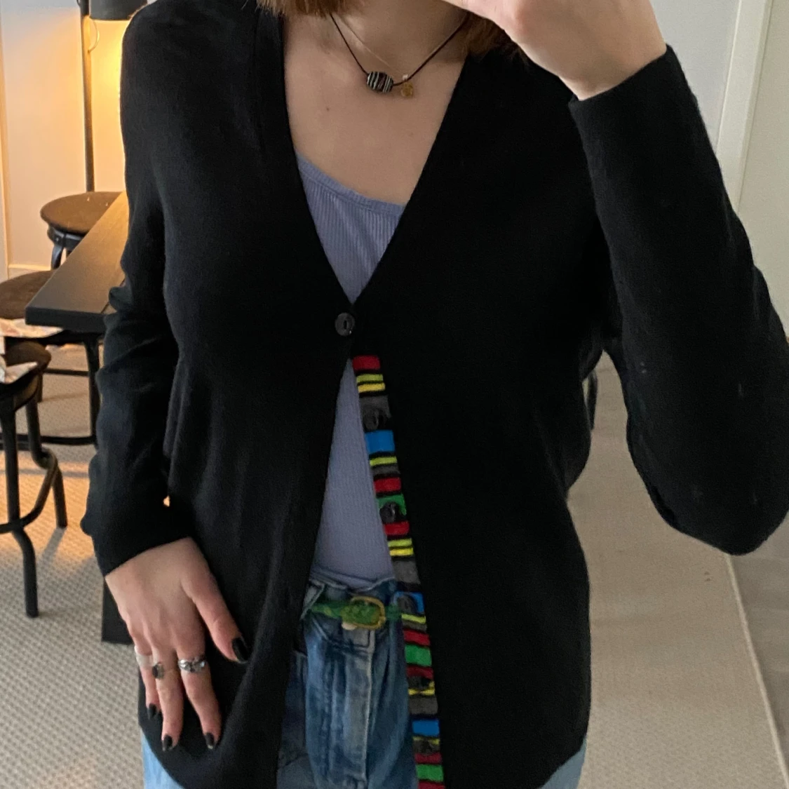Rikitgt fin svart kofta med cool unik detalj vid knäppningen😎☺️❤️ (10% av vinsten går till WWF)🌱💗