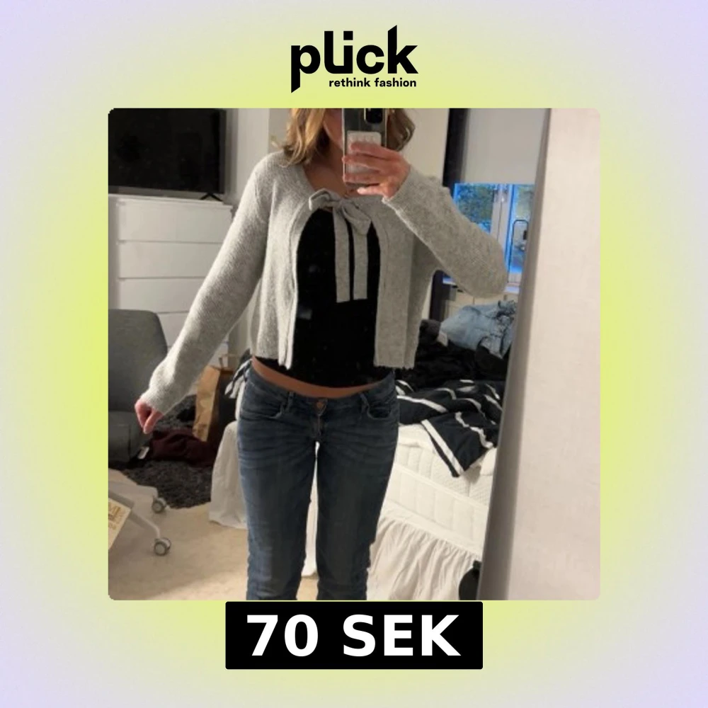 Superfin ljusgrå stickad kofta från J'aime OLYTO. Långa ärmar och söt knytning framtill.