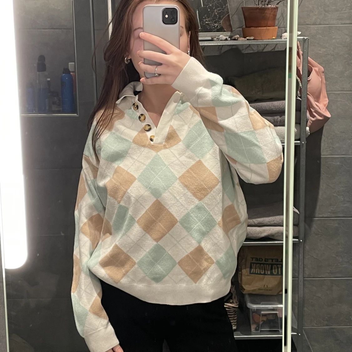Super söt rutig stickad tröja. Helt ny men kommer ej till användning tyvärr