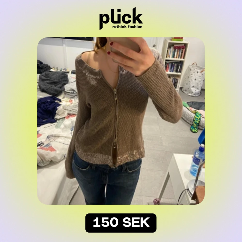 Cool stickad kofta med dragkedja, palettdetaljer och glitter Inga defekter