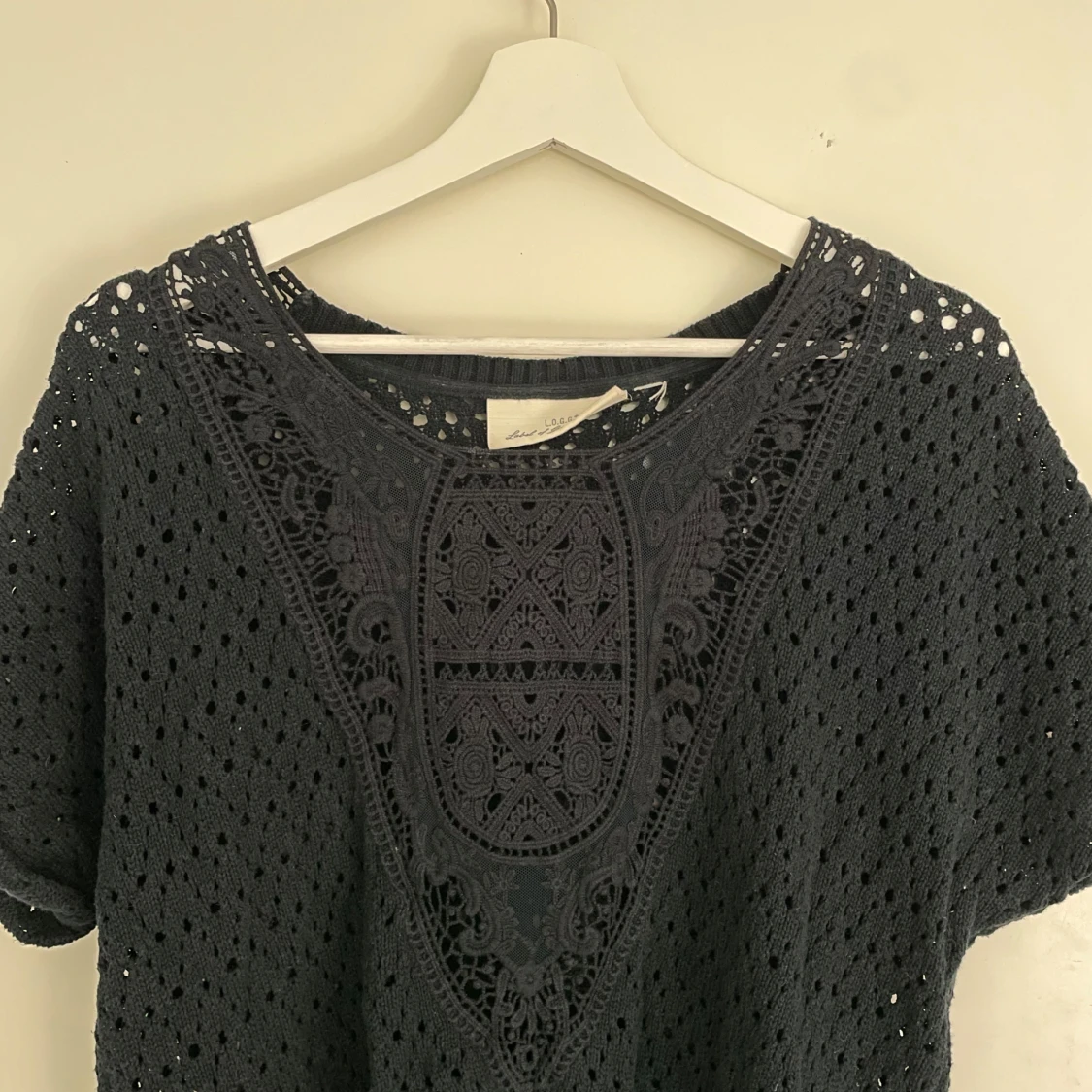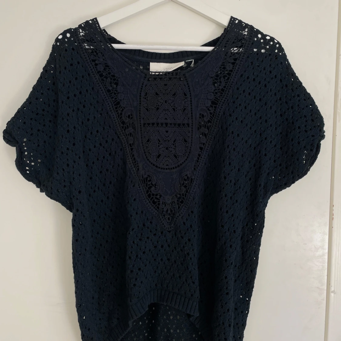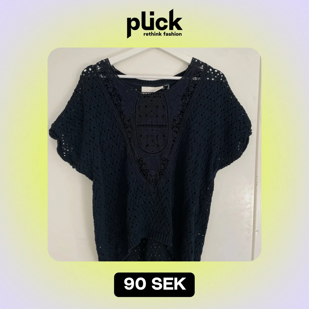 Otrolig marinblå stickad/virkad t-shirt från LOGG h&m! Storlek s-m Sitter nice oversized på!