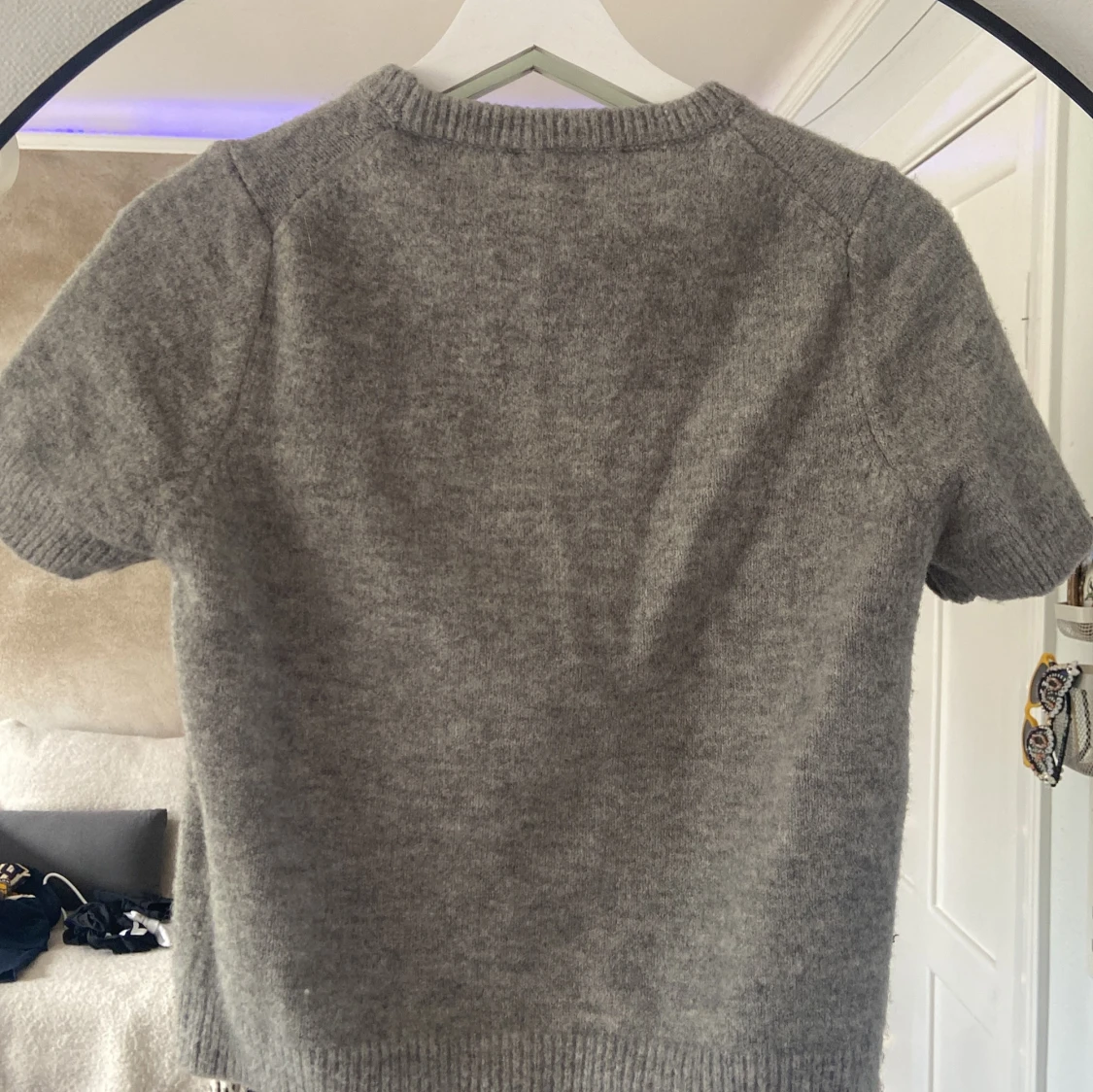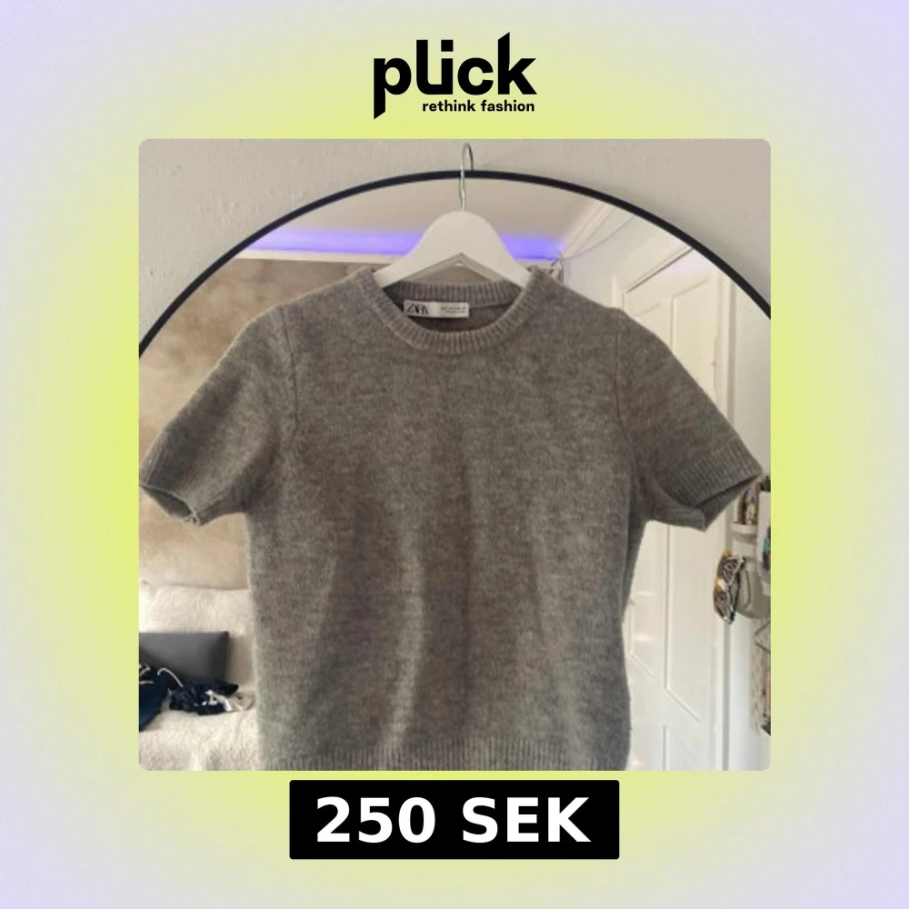 Grå stickad ”t shirt” från Zara i storlek S. Endast använd några gånger så knappt nopprig alls. Säljer då den är för liten och har då knappt använt den. Köpt för ungefär 350 tror jag därav priset. Kan gå ner till 200kr.