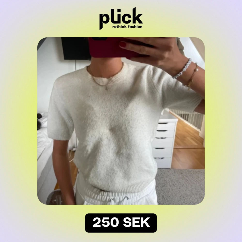jättefin vit/beige stickad t/shirt från hm, perfekt passform och färg som passar perfekt till hösten.