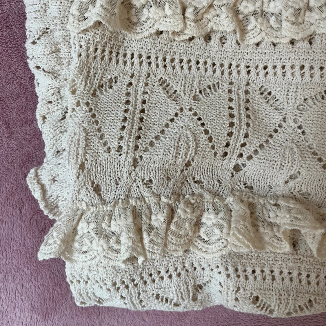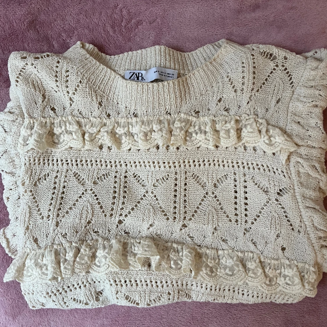 Stickad tröja från Zara med volanger, knappt använd utan defekter