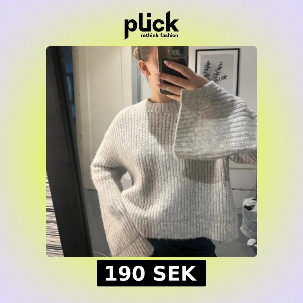 Supermysig ljusgrå stickad tröja från Gina Tricot med slits i ärmarna och på sidan🩶Varm och perfekt nu till hösten🍁Använd ca 2 gånger