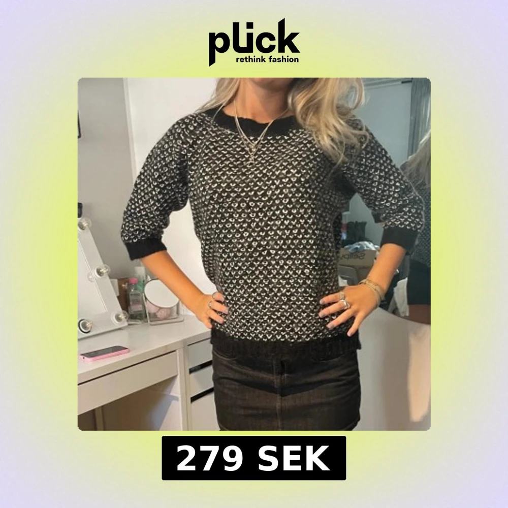 Sjukt cool svartvit stickad trekvartströja i storlek M. Sitter som S. Perfekt tröja nu till hösten/vintern. Hör av er om ni har några frågor💗