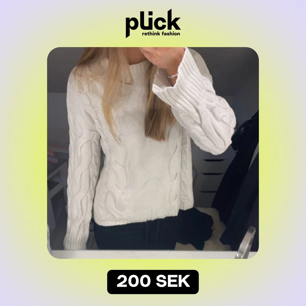 Vit stickad tröja med mönster. Fintskick🩷skriv för frågor