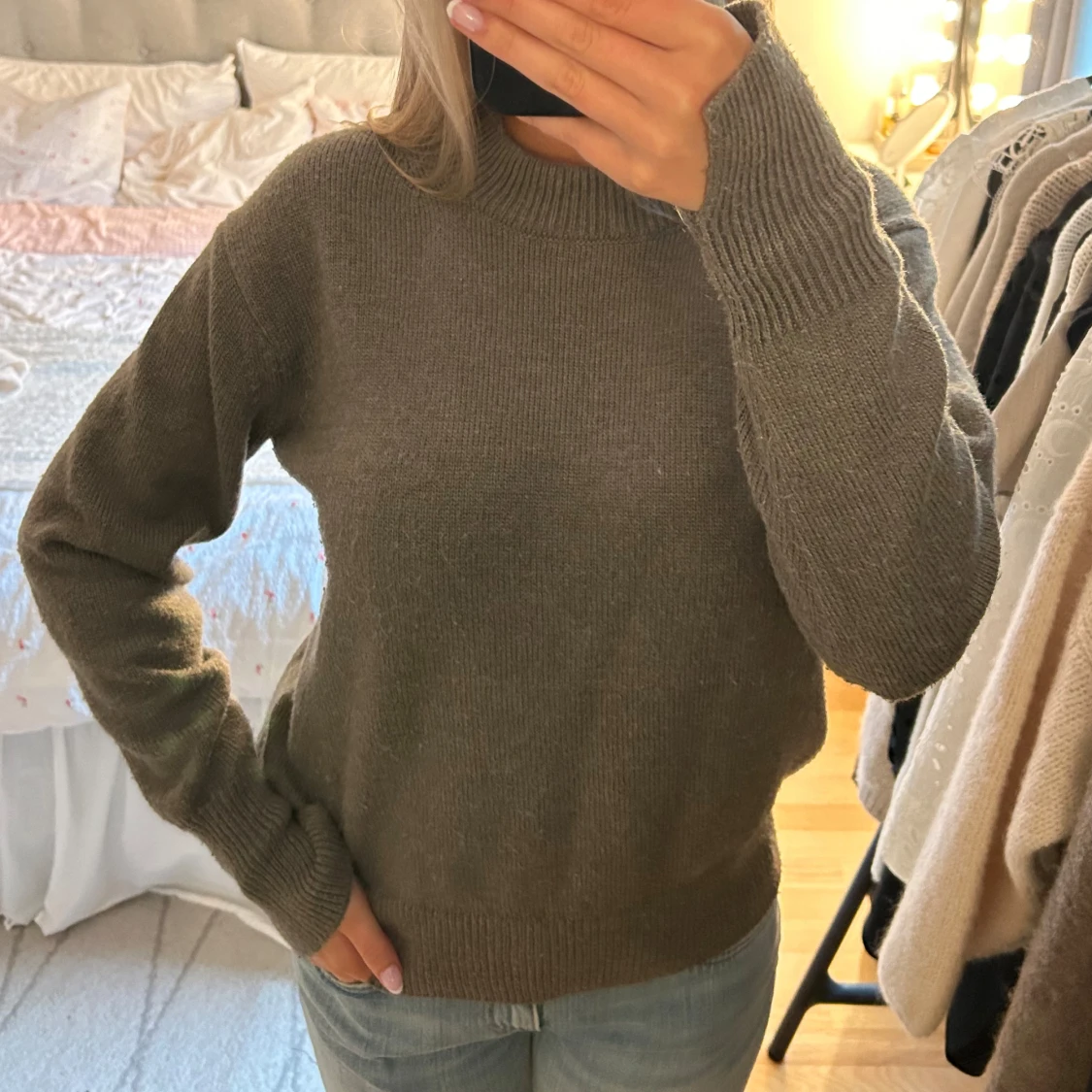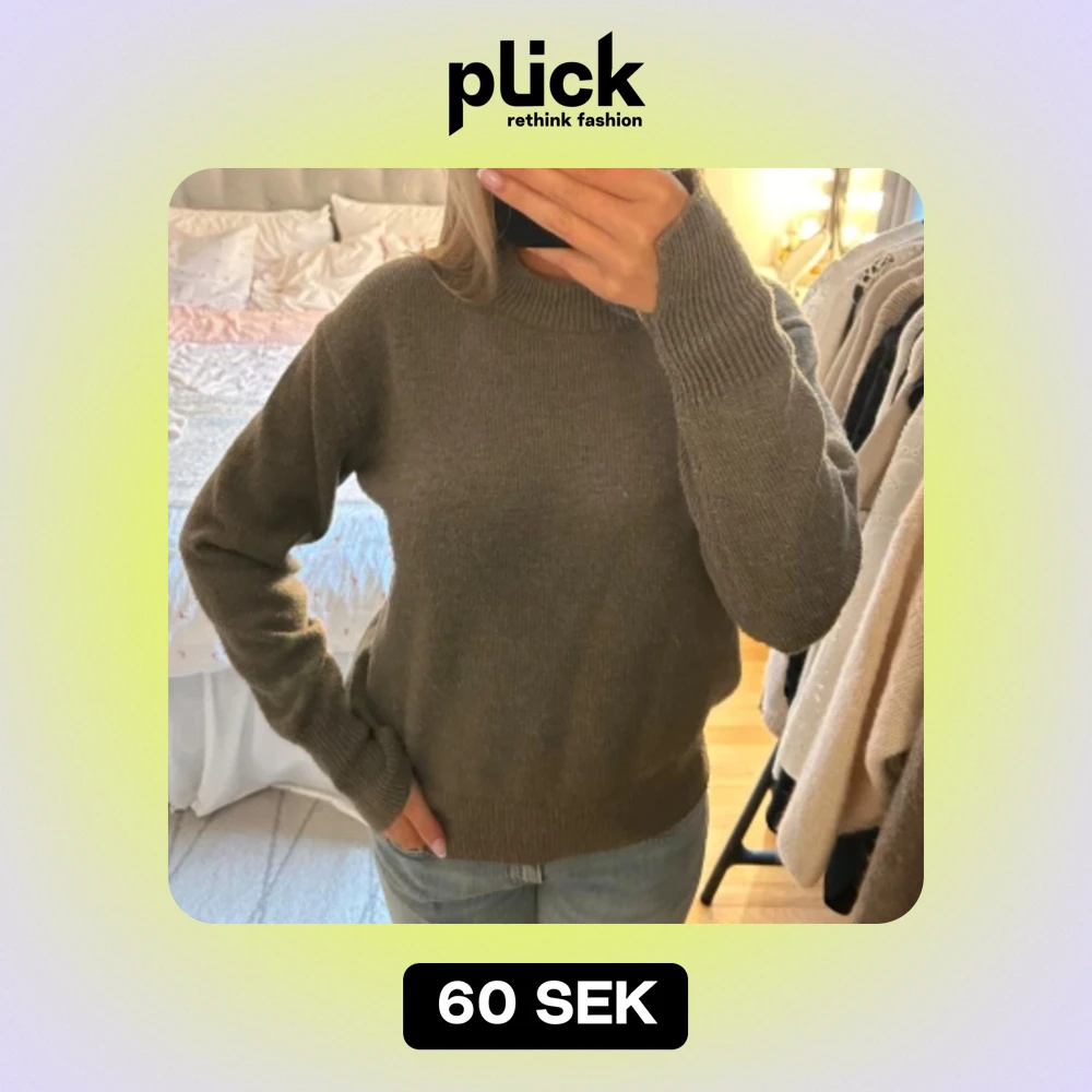 Grön stickad tröja med slits vid ärmarna